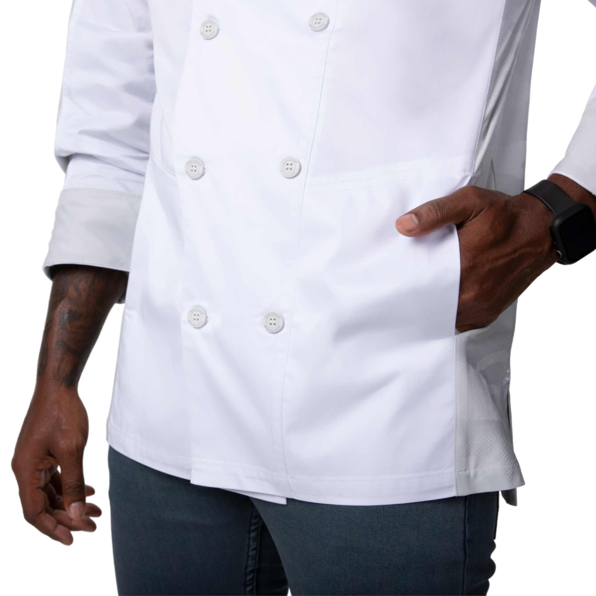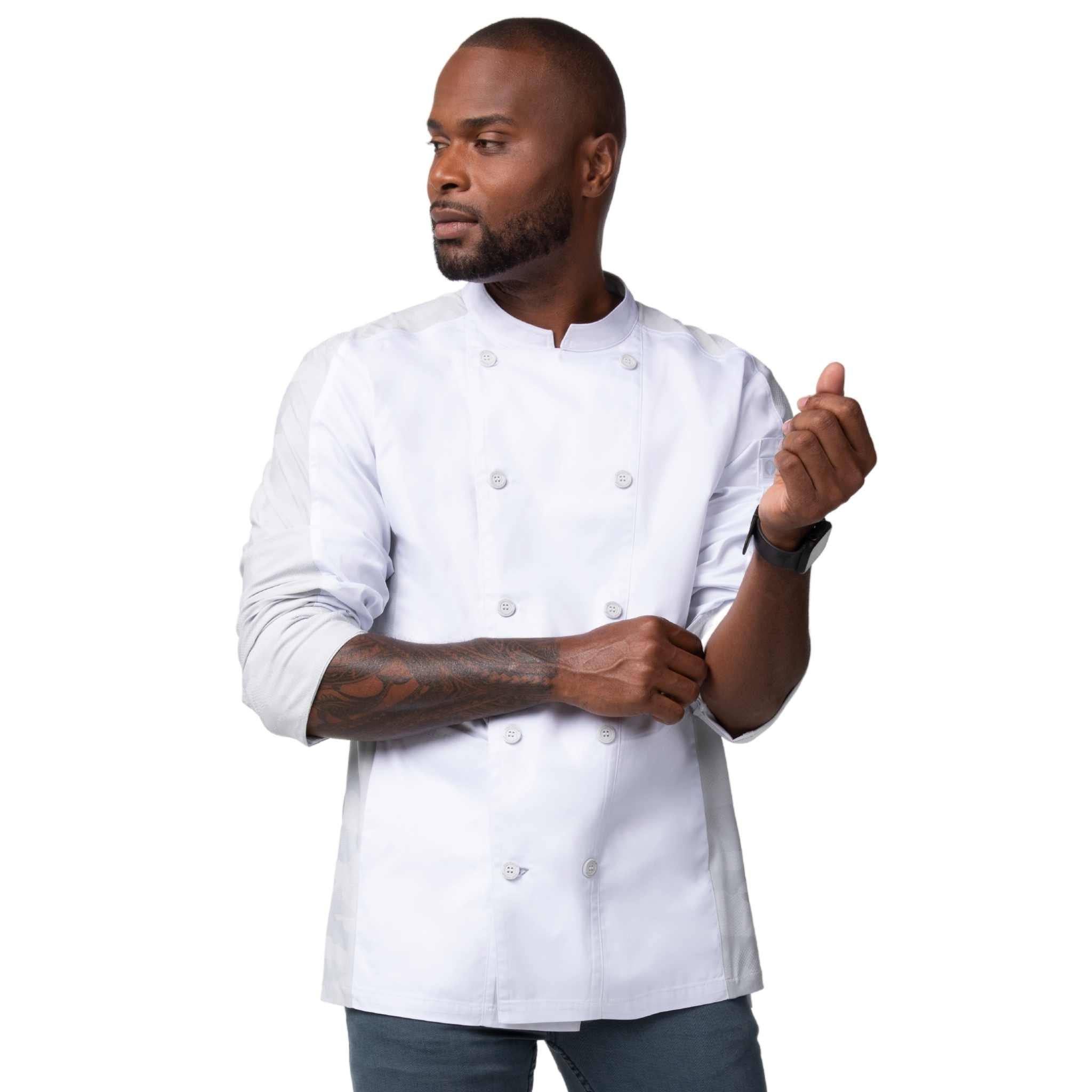 革新的なデザインで世界中のシェフから支持を得てきたChef Works®のユニフォームコレクション「Urban Collection™(アーバンコレクション)」。ここに新しく加わった「Mojave(モハーベ)」コックコートは、カモフラージュ柄のストレッチメッシュ生地を採用した個性的でスタイリッシュなコックコート。カモフラージュ柄の配色トーンをメイン生地に揃え、個性的でありながら洗練された印象に。伸縮性と通気性に優れたメッシュ生地により、一日中着ていたくなる様な快適な着心地を実現。レストランやカフェ、ベーカリーでも、「Mojave(モハーベ)」コックコートで個性を発揮して、忙しいキッチンでもかっこよく、そして快適に。