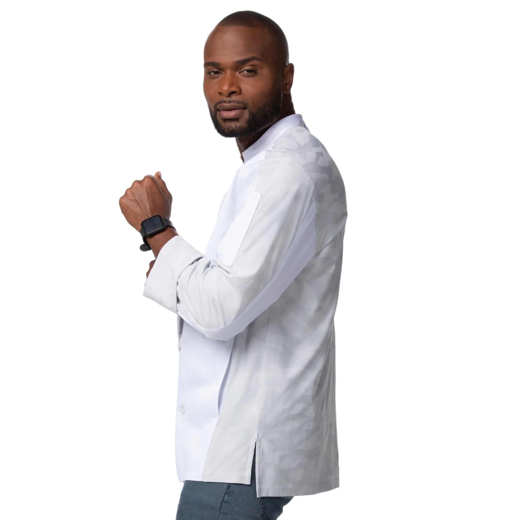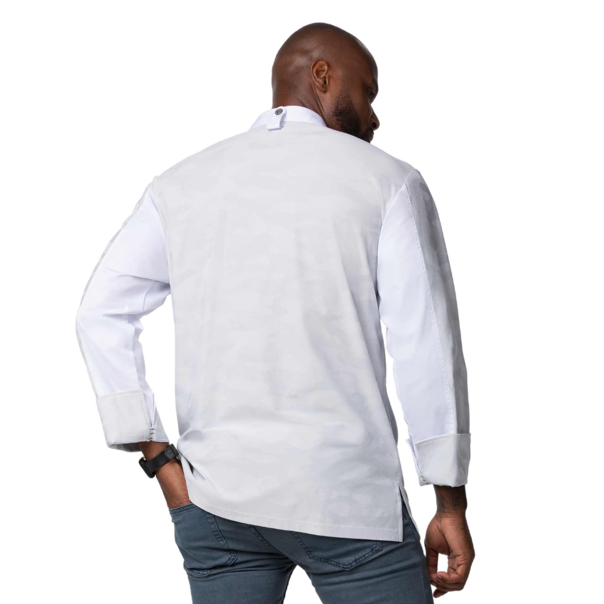 メンズ モハーベ ホワイト カモフラージュ柄メッシュ搭載 長袖 コックコート