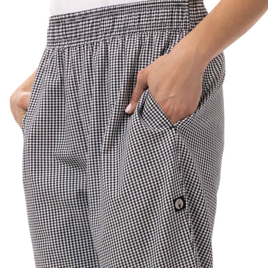 商品の特徴 ポリエステル65%/綿35% 生地 6.2 oz. ウエストゴム 2つの前ポケット カラー:スモールチェック(全2色展開) ゆったりめのストレートフィット※メンズは→こちら← 商品説明 スモールチェックがお洒落な快適シェフパンツ。綺麗なストレートタイプのシルエットに、少し...