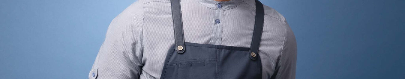 見る人に落ち着きや誠実さ、爽やかさを連想させる「ブルー」。Chef Worksではブルーエプロンを様々な素材とスタイルの組み合わせでご用意しています。 シンプルで耐久性に優れるポリコットン素材や個性的なデニム生地、短い丈の腰巻タイプから胸当てタイプまで。大きめのポケットやタオルループ、小物挿しを備えたもの、肩こりが辛い人にはストラップがクロスバックタイプのエプロンもご用意。キッチンでシェフをおしゃれにサポートするエプロンからホールでお客様を魅了するエプロンに至るまで、あなたが探していたブルーエプロンがここで見つかるはずです。 購入前に実物をご覧いただく事も可能です!詳しくはページ下部ヘルプ内の【貸し出しサンプル】をご覧ください。あなたのお店を彩ってくれるお好みのブルーエプロンを是非見つけてみてください!