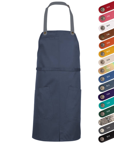 シアトル ブルー 色選択可能レザールックストラップ 《レギュラー》 胸当て エプロン|Chef Works Japan