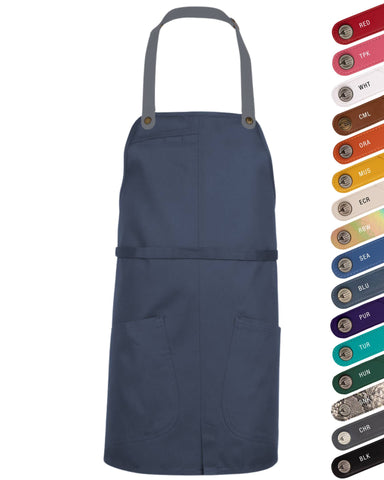 ラルゴ ブルー 色選択可能レザールックストラップ 《レギュラー》 胸当て エプロン