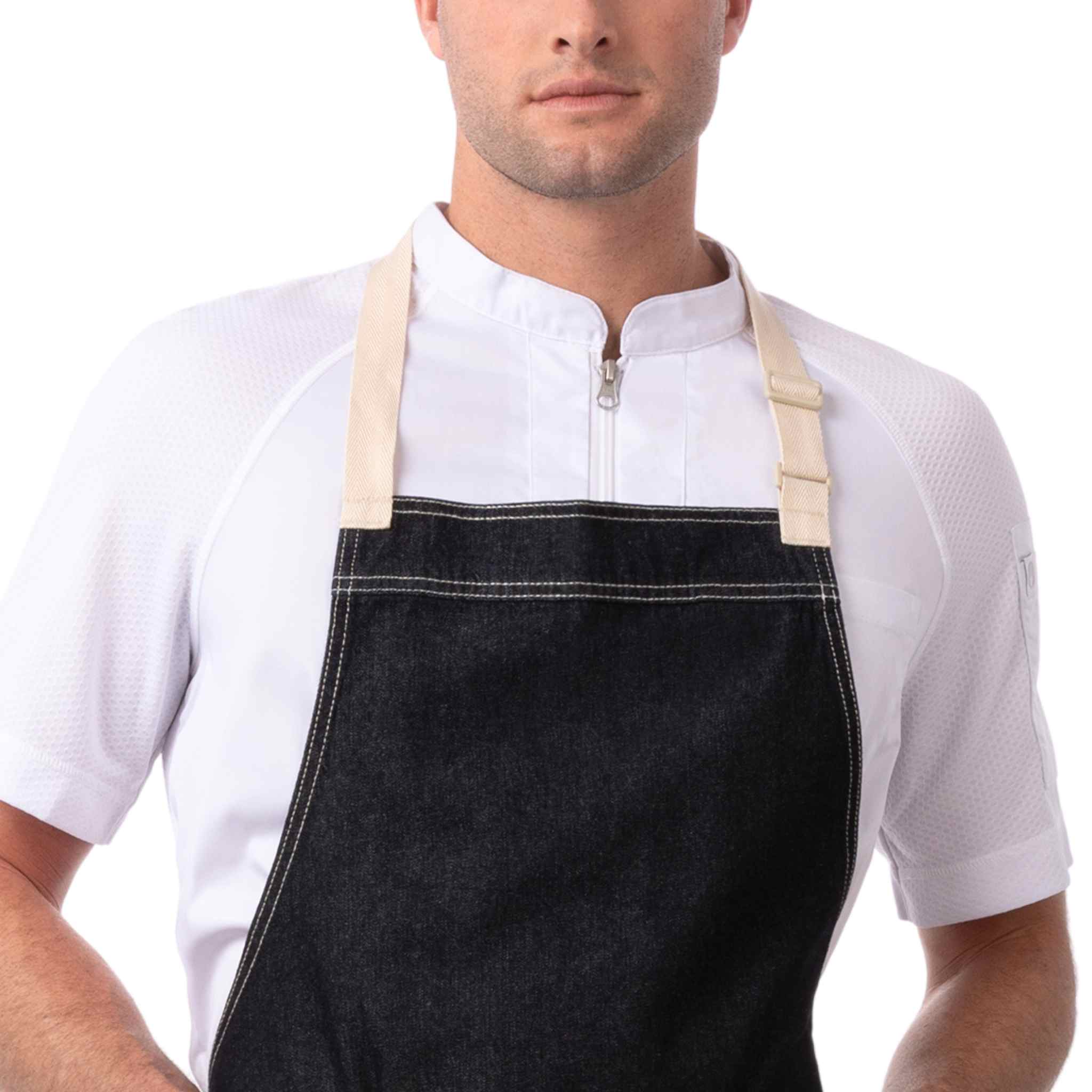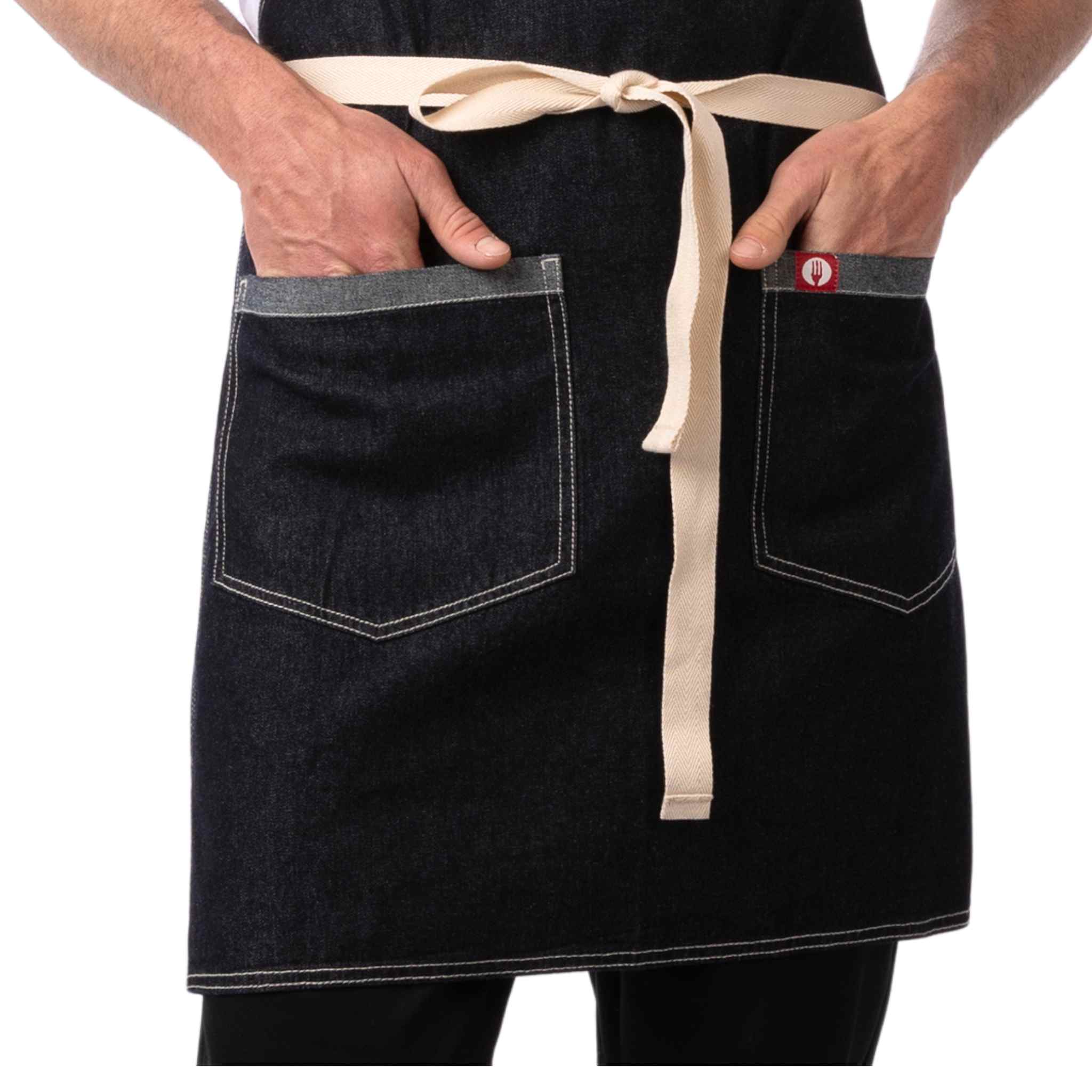 清潔感のあるシンプルなデザインに、コントラストカラーのストラップが遊び心を加える「リッジウッド」エプロン。お手頃価格ながらしっかりとした質感の生地が魅力。大きめのポケットを前面に2つ、ネックストラップは長さ調節が可能です。軽い着心地で長時間のシフトにも最適。「ストーンブルー」と「インディゴブルー」カラーは綿100%の本格デニムを使用。「ブラック」「カーキ」「ハンター」カラーにはポリエステル繊維を配合し、耐久性の向上、また乾きやすくシワになりにくいのでメンテナンスも簡単です。レストランやカフェ、ベーカリーなど様々なシーンで「リッジウッド」エプロンがお店の雰囲気を引き立ててくれるはず。あなたのお店にはどの色を採用しますか?