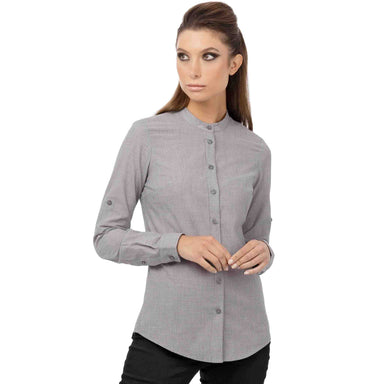 商品の特徴 綿62%/ポリエステル38% 生地 2.6 oz. ヘアラインストライプ 長袖 バンドカラー 首後ろにエプロンホルダー 袖口幅を調節可能なカフス 袖ロールアップ留め用ボタン付きタブ フロントダーツ カラー:ブラック(全3色あり) メンズあり(アイテムコード:SFB02) ...
