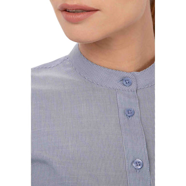 商品の特徴 綿62%/ポリエステル38% 生地 2.6 oz. ヘアラインストライプ 長袖 バンドカラー 首後ろにエプロンホルダー 袖口幅を調節可能なカフス 袖ロールアップ留め用ボタン付きタブ フロントダーツ カラー:ブルー(全3色あり) メンズあり(アイテムコード:SFB02) 商...