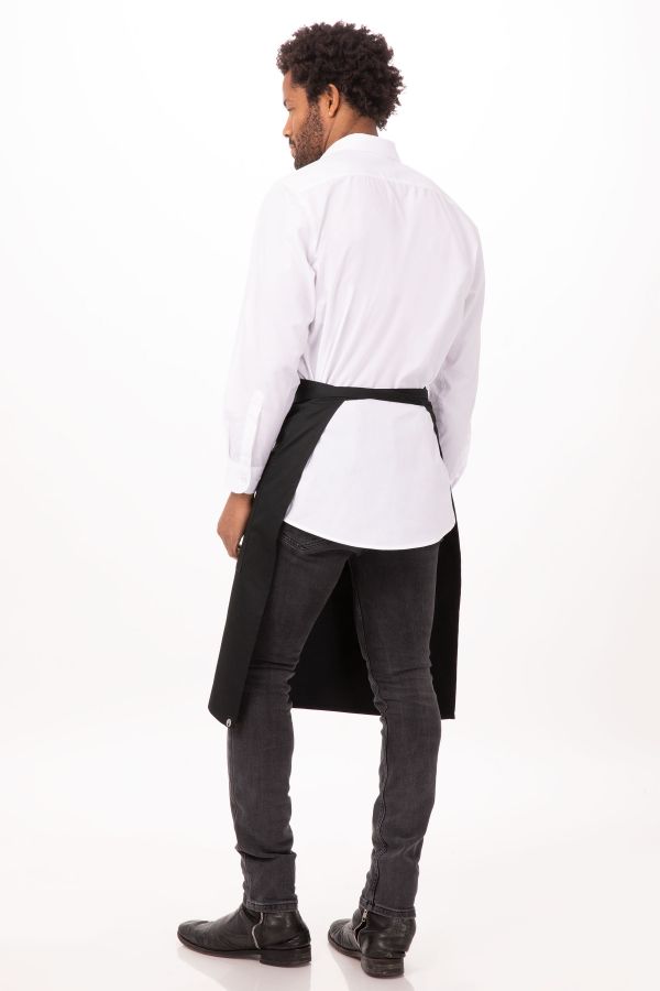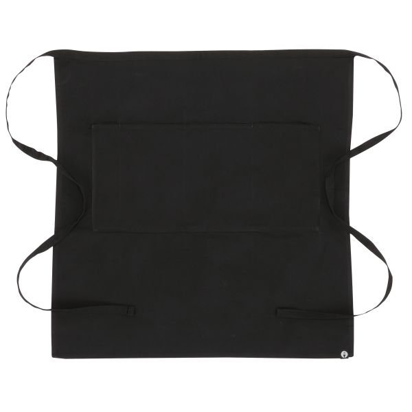 表と裏両方に3つずつポケットが付いているリバーシブル3/4ウエストエプロン。仕事中にエプロンが汚れてしまっても、裏表を逆にして外見の清潔感をキープ。デザイン性だけでなく、機能性も抜群のエプロン。嬉しいペン用のディバイダ―付きポケット。キッチンでもホールでも多様なユニフォームに合わせやすいエプロンです。カラーはブラックのみ。