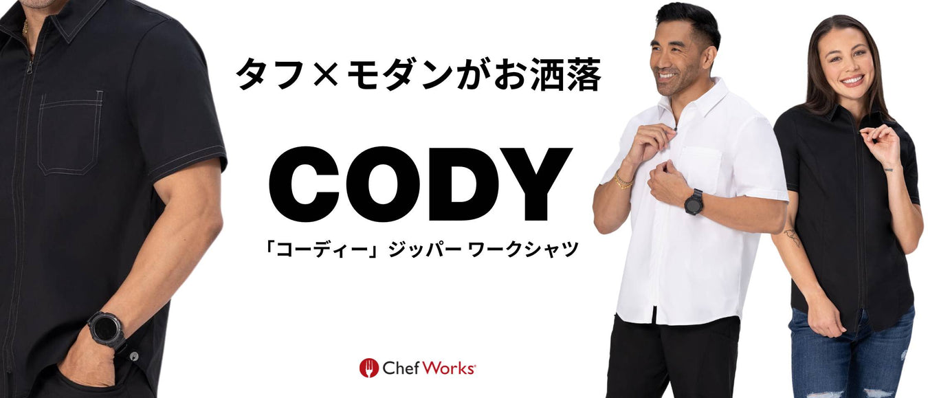 動きやすさと耐久性が特徴のワークシャツに、ジップアップフロントを採用したモダンなデザインが特徴の「コーディー」ワークシャツ。シンプルかつ清潔感のあるスタイルで、既存のコーディネートにも取り入れやすいのも特徴です。シャツの生地は、吸湿性に優れさらりとした着心地を提供するコットンと伸縮性のある素材の混紡生地を採用しており、忙しい飲食店のフロアやキッチンでも快適に仕事に挑めます。ブラックとホワイトの2色をメンズ・レディースそれぞれの作りでご用意しています。さぁ、「コーディー」で働きやすさと清潔感のあるスタイルを手に入れましょう。
