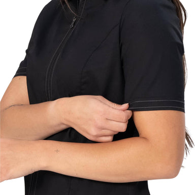 商品の特徴 生地:ポリエステル64% 綿34% ポリウレタン2% 生地厚み:4.1 oz. ストレッチ生地採用 半袖 ジッパー式前開き コントラストカラーのステッチ バックヨーク プリンセスラインの切り替え カラー:ブラック(全2色展開) レディース(メンズあり)全てのカラーは→こちら←...