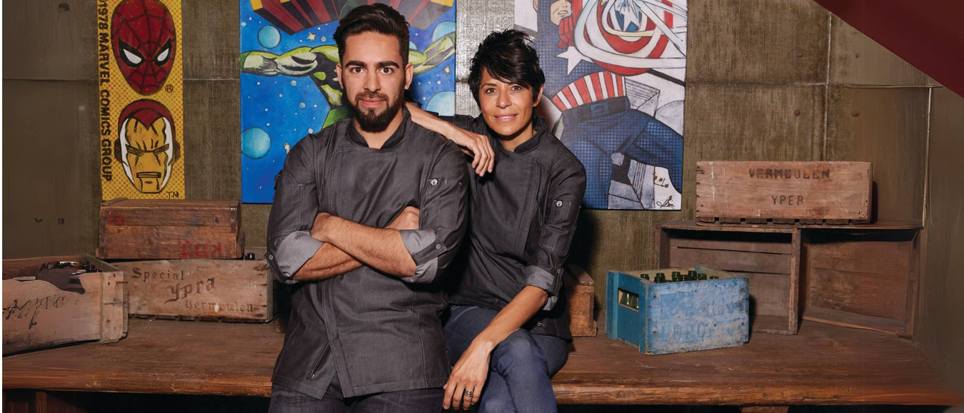一つ一つが個性的な魅力を放つChef Worksのデニムコックコート。軽量デニムを採用しており着心地はとっても軽快。流行の先端を行くストリートでも圧倒的な支持を得る「グラマシーコックコート」をはじめ、人気の「Cool Vent™」機能を搭載した半袖のコックコートから女性用のコックコートまで、豊富なラインナップをご用意しています。Chef Worksのデニムコックコートは洗濯機で洗えるのでお手入れもカンタン、いつでも清潔。オープンキッチンを備えたカフェやレストランはもちろん、デニムならではの丈夫さを活かして炭焼きやピザ窯を構えるお店にもぴったり。さぁ、使えば使うほど味の出てくるデニムコックコートの魅力を体験しましょう。購入前に実物をご覧いただく事も可能です!詳しくはページ下部ヘルプ内の【貸し出しサンプル】をご覧ください。