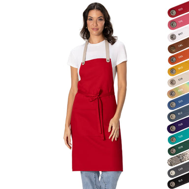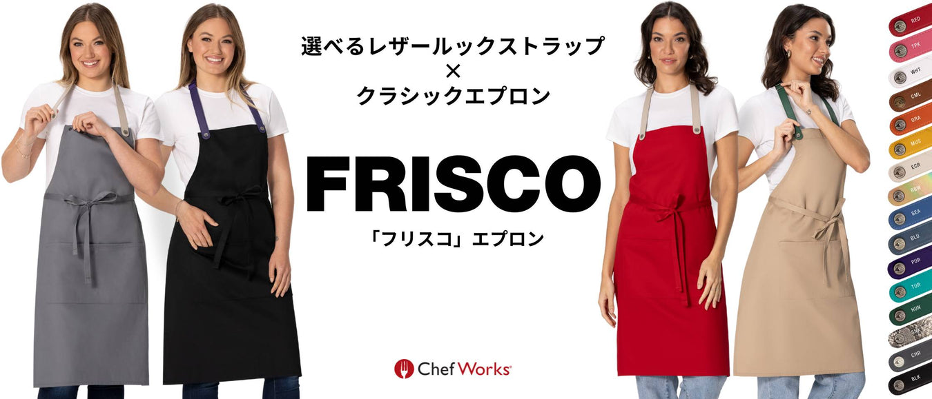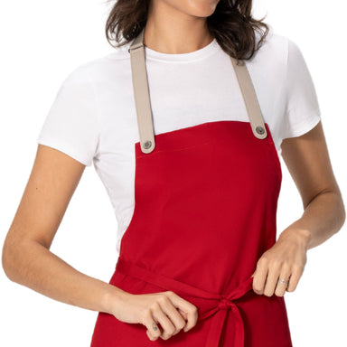 フリスコ レッド 色選択可能レザールックストラップ 胸当てエプロン