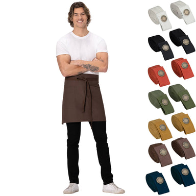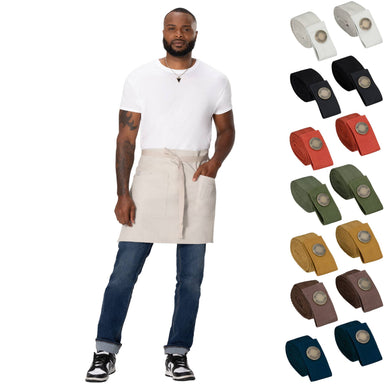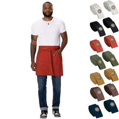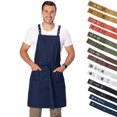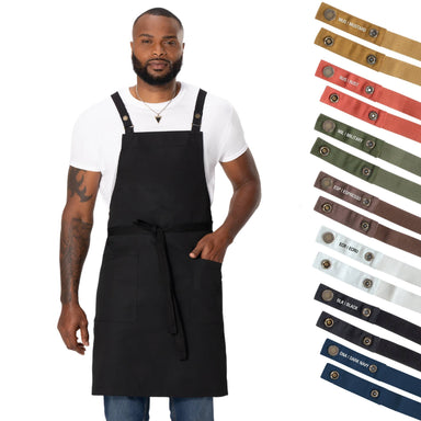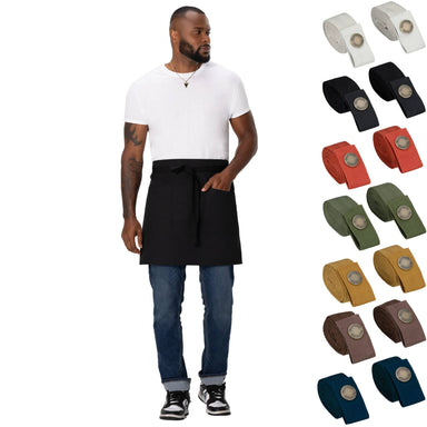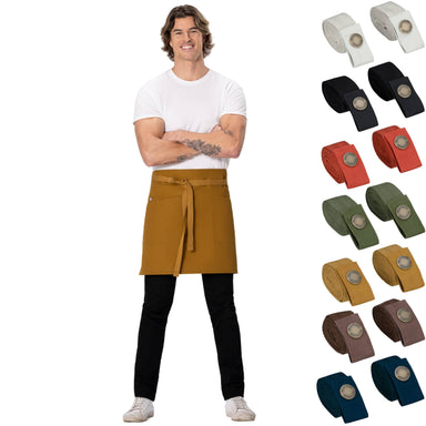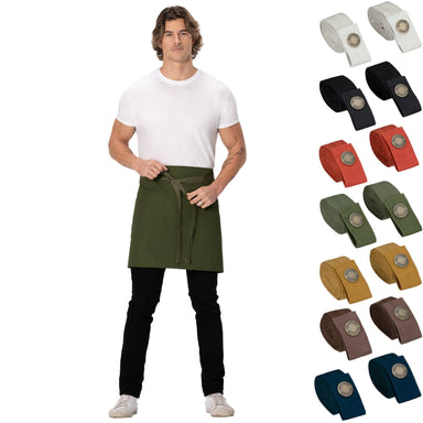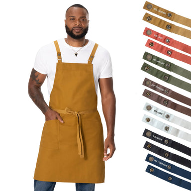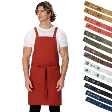 Chef Worksが開発した特別なサスティナブルキャンバス生地を使用する「ロックハート」エプロン。丈夫さとラフな質感がお洒落なキャンバス生地を、ペットボトルからリサイクルされたポリエステル繊維と綿で構成。キャンバス生地の特性はそのままに、サスティナブルなエプロンに仕上がりました。エプロンに付属するストラップは好みの色を選択可能、!レストランやカフェ、ベーカリーから居酒屋さんに至るまで、店舗の雰囲気に合ったエプロンとストラップの組み合わせを見つけましょう。