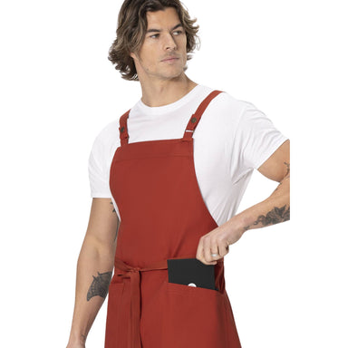 エプロンの特徴 サスティナブルキャンバス生地 生地:ポリエステル(ペットボトルリサイクル繊維)80%/綿20% 生地厚み:7.96 oz. 前面に2つのヒップポケット 左胸にユーティリティループ 右ポケット内にペン・小物挿しポケット付き ほつれ止め(閂止め) 男女兼用 カラー:ラスト サイ...