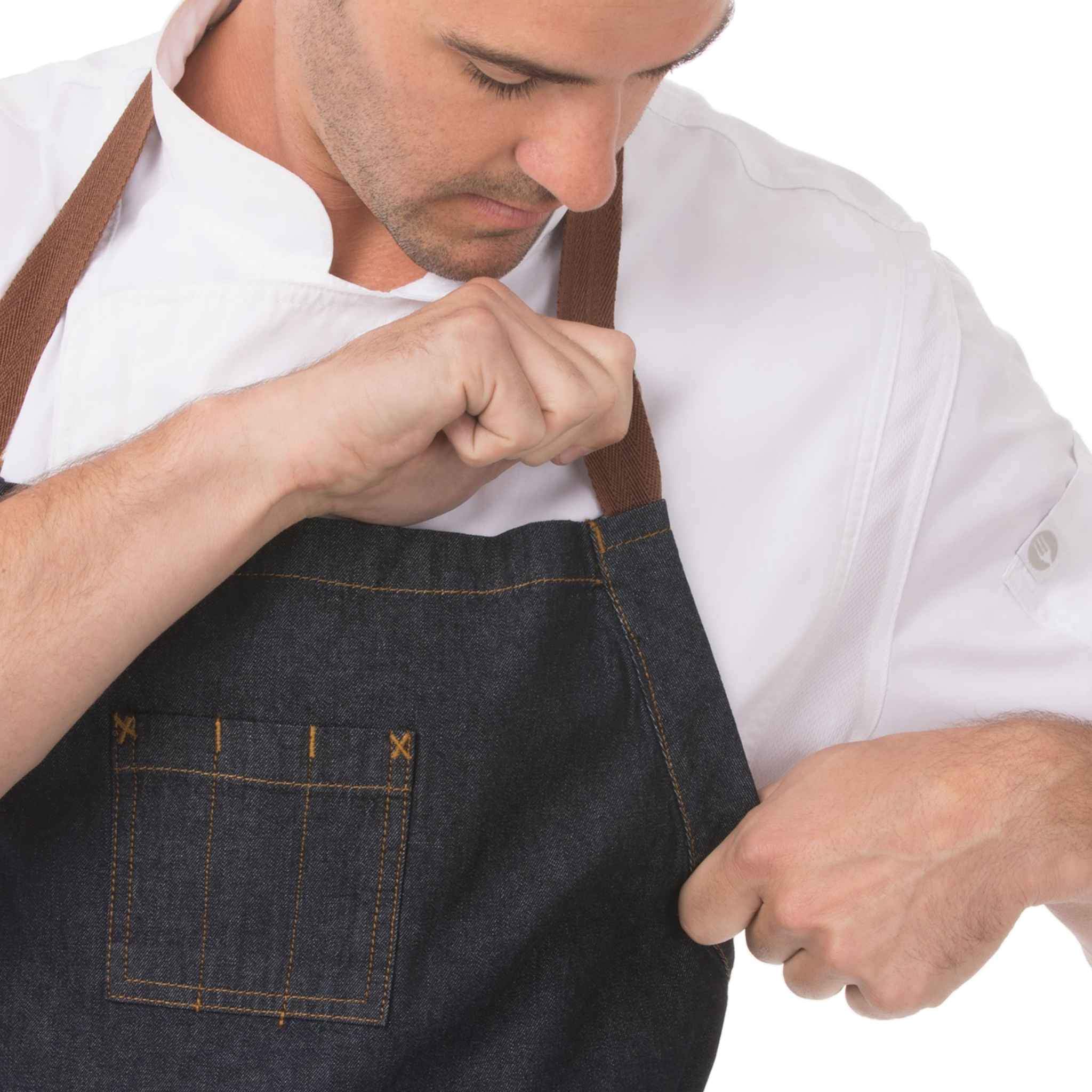 Chef Worksのアーバンコレクションの中でもトップレベルの人気を誇るメンフィスビブエプロン。綿100%のデニム生地は軽く柔らかな着心地ながら、耐久性が高いのが特徴。ペンや小物を収納可能な胸ポケットに加え、長さ調節可能なストラップ、大きな前ポケット2つ、スマートフォン用ポケットも装備し、クールなデザインだけでなく、使いやすさに優れている点も人気の理由。アメリカのストリートファッションからデザインを取り入れたトレンドのエプロン。 【「スライドアジャスト式」ストラップ長さ調節方法】 エプロンを首にかけた状態でストラップの端を持ち、エプロン本体を上下にスライドさせてることで簡単にストラップの長さを調節可能です。 #Memphis #めんふぃす #胸当て