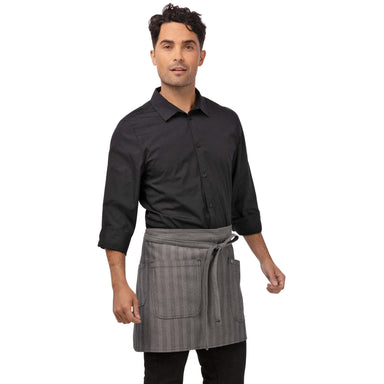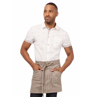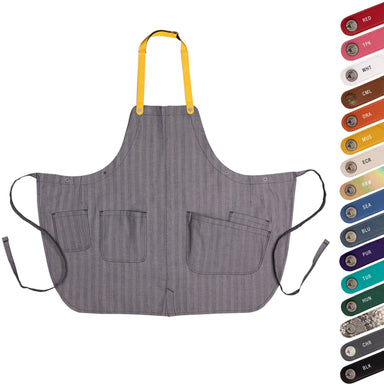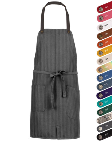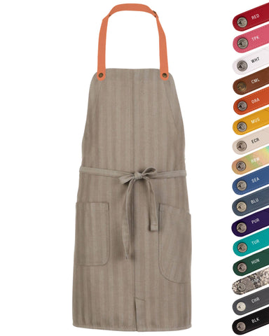 お洒落なヘリンボーン生地を採用した個性的なエプロン。レザールックストラップは購入時にお好みのカラーを選択可能。レストランやカフェ、ベーカリーなど様々な飲食店に個性と上品な雰囲気をもたらす「シアトル」エプロンを是非お試しください。