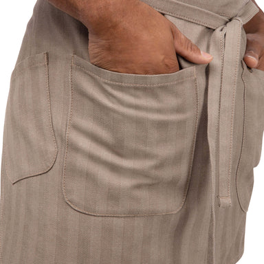 商品の特徴 生地:ポリエステル65%/綿35% 生地厚み:6.8oz. ヘリンボーン生地 大小4つのダブルステッチポケット ラウンドカットされた裾端 ほつれ止め(閂止め) 男女兼用 カラー:トープ(全3色あり) サイズ:約 丈40cm x 幅96cm 商品説明 高級感漂うヘリンボ...