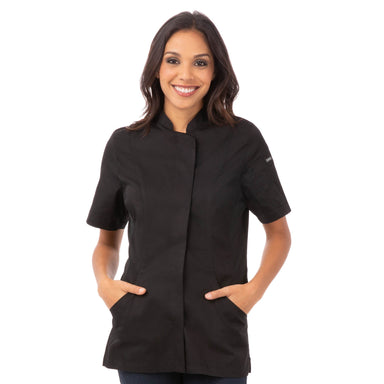 商品の特徴 生地:ポリエステル65% / 綿35% 生地厚み:4.7 oz. 軽量薄手「Lite」生地使用 背中心と両サイドに通気伸縮生地「Cool Vent」搭載 半袖 隠しスナップボタンの前開き 両サイドスリット入り 首後ろエプロンホルダー 左腕ペン・温度計用ポケット フロントポケ...
