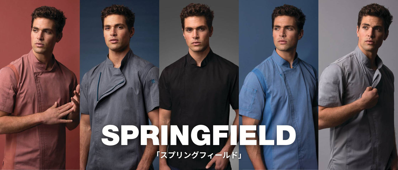 涼しくて、機能的で、スタイリッシュ、それが「スプリングフィールド」コックコート。ジッパー式の前開きを採用した半袖のコックコートに、長時間の着用でも疲れづらい軽くて丈夫な「Lite™」生地を採用。ボディー両サイドのパネルには通気性に優れる「Cool Vent」生地を搭載しており、蒸し暑いキッチンでの調理も快適にこなせます。シェフの仕事をサポートする便利な機能も多数搭載。メンズ・レディースそれぞれの展開に、豊富なカラーバリエーションをご用意。レストランやベーカリー、カフェや居酒屋まで、あなたのお店にぴったりの「スプリングフィールド」を見つけましょう!