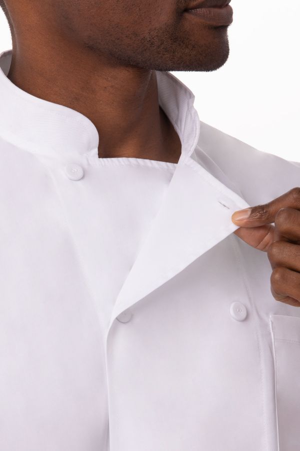 モロッコは軽量薄手の「Lite」生地を採用した涼しい七分袖のコックコート。同色布でくるんだダブルボタンを採用したクリーンな見は、様々な業種の飲食店にフィットします。左胸ポケットに加え、左腕にペン・温度計用のポケットも搭載し機能性も抜群。耐久性に優れるポリコットン素材で毎日の着用、洗濯でも縮みにくく長期使用のユニフォームとして最適です。ポリエステル65%の混紡素材なので乾きも早くメンテナンスも簡単。豊富なサイズ展開とカラーバリエーションも魅力。七分袖とゆったりとしたフィット感で動きやすく、忙しいレストランや居酒屋、ホテルの厨房などに最適です。