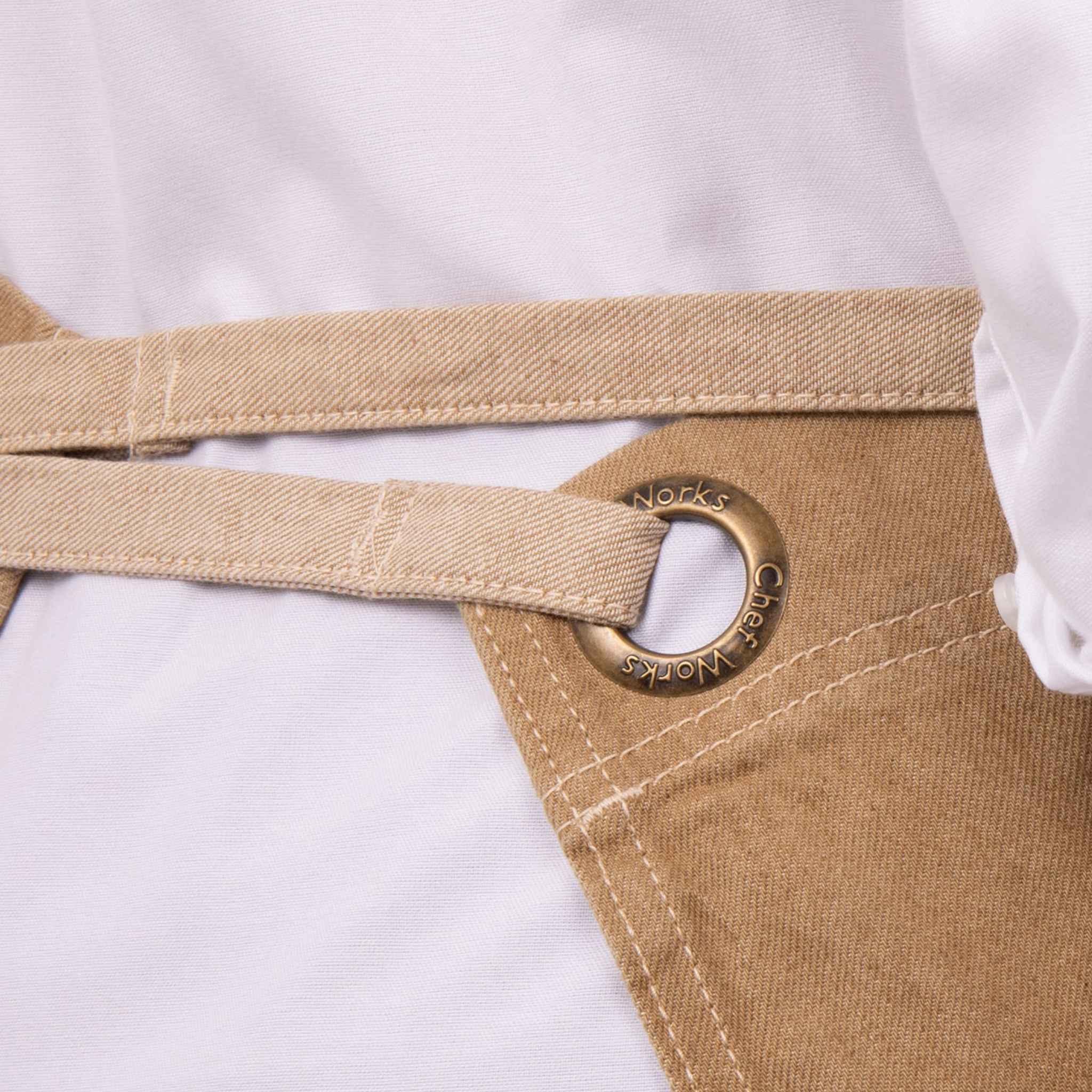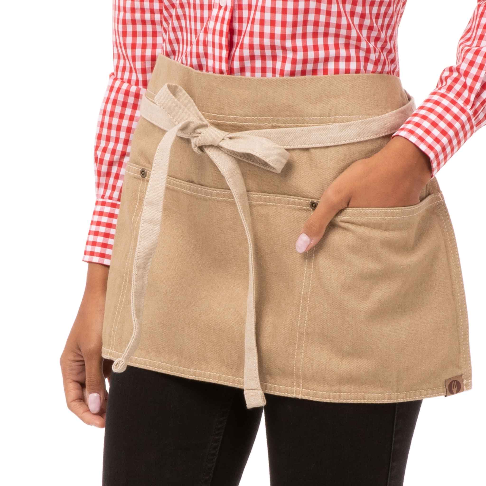 Chef Works人気のアーバンコレクションの1つ、オースティンクォーターエプロンはペインター風の短め綿デニム100%エプロン。ポケットは大きめの前ポケットが計3つ。ファッション性だけでなく、機能性も抜群。ジーンズのようなリベット(とめ金)もポケットに付いていて、ヴィンテージ感もありおしゃれです。デニムを使っているので、丈夫で、使えば使うほど、味が出てくるエプロンです。#Austin #おーすてぃん