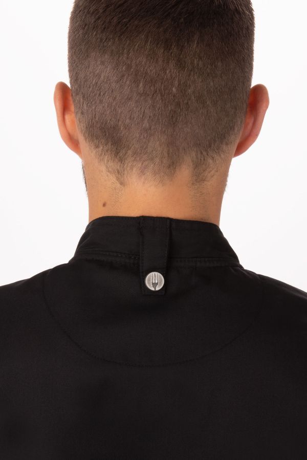 ボタン式で袖をロールアップして留められる物をお探しのシェフに。 首後ろにエプロンホルダー、両腕にポケット付き。リーズブルな価格なのに機能性充実!
