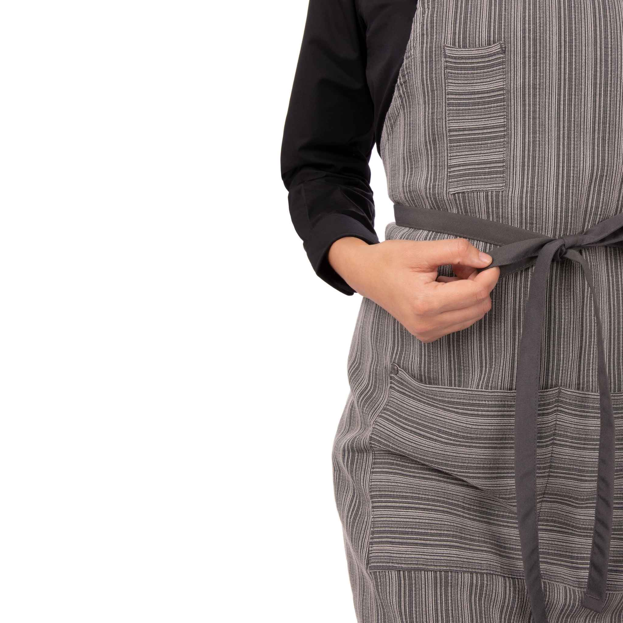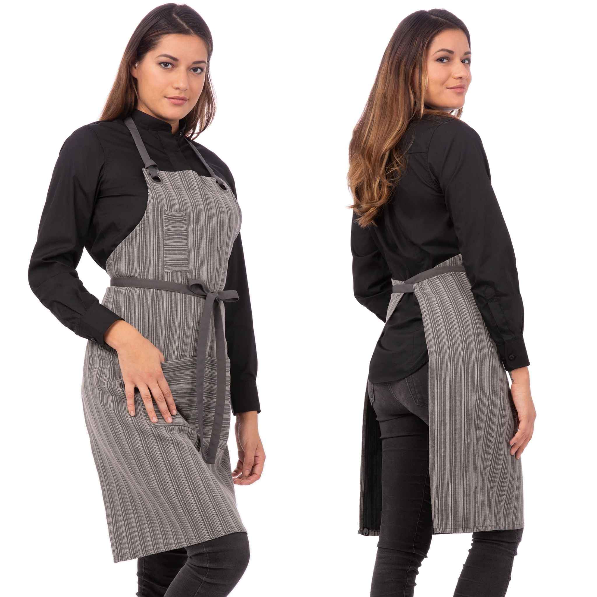 Chef Works人気のアーバンコレクションの1つ、ブルックリンビブエプロンは綿とポリエステルの混紡生地でできたストライプのエプロン。ヴィンテージ調の留め具で結ぶ調節可能な肩紐、ペン・温度計用の胸ポケットに加えて、大きめのサイズの2つのポケットも付いていて、機能性も抜群。混紡なので、生地は丈夫、着心地よく、乾きも早い。チャコール/グレーという控えめだけど、隠れおしゃれな配色。白のコックコートやTシャツとの相性も良くナチュラルな雰囲気を作り上げます。 #Brooklyn #ぶるっくりん