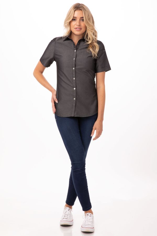 レディース デトロイト ブラック スナップボタン 軽量デニム 半袖 シャツ