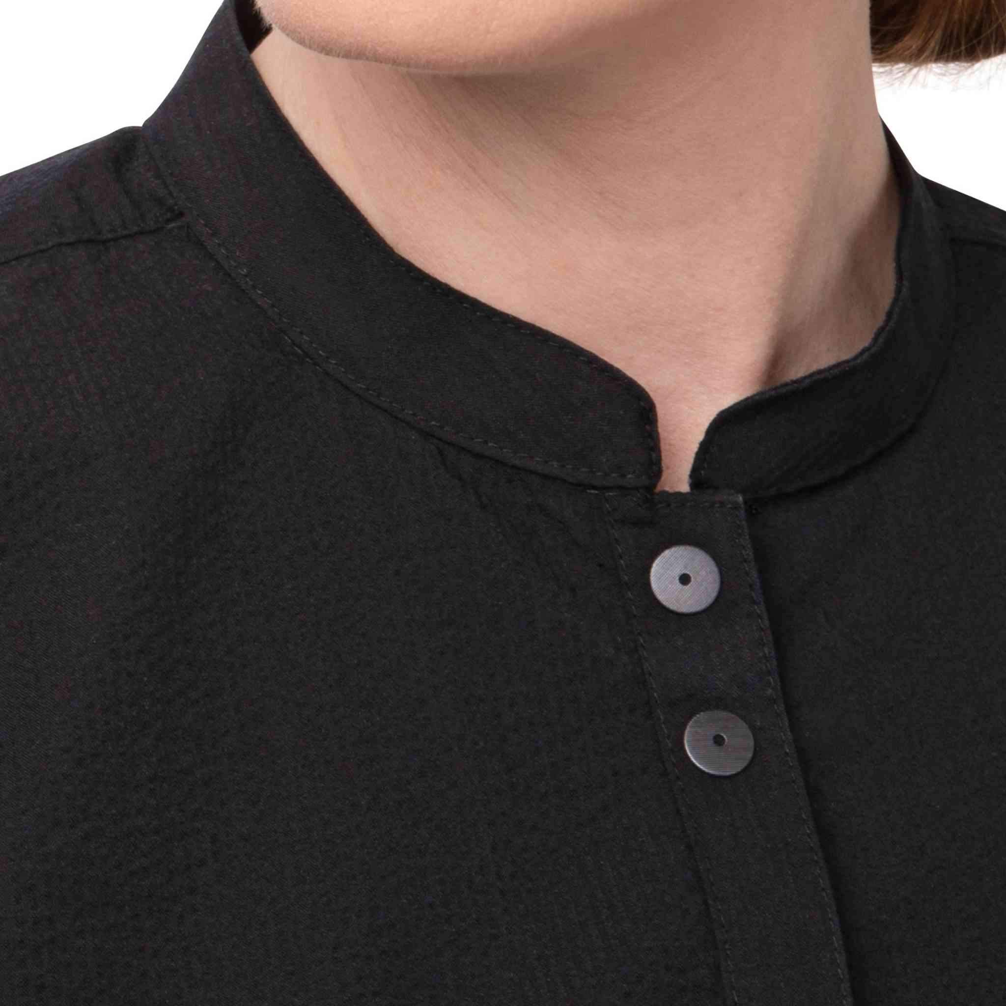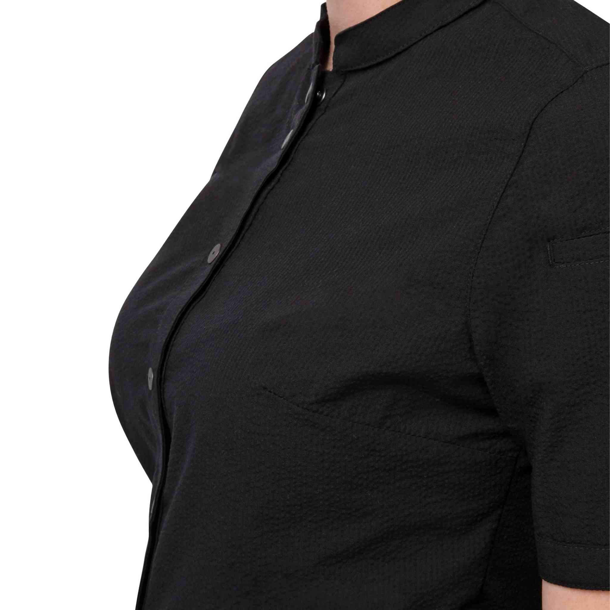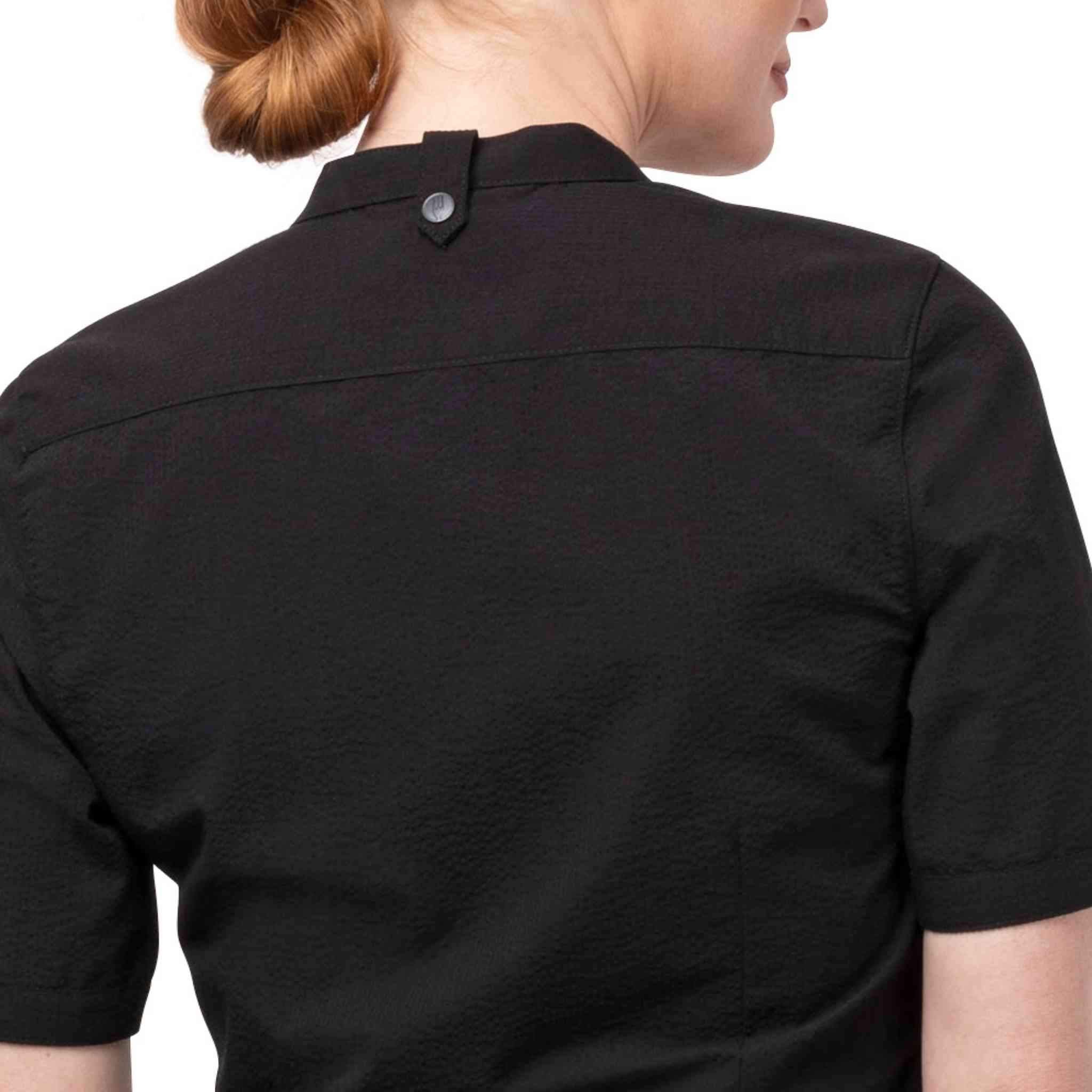 さらりと軽い着心地が特徴の「シアサッカー」シャツ。バンドカラーの襟とスナップボタンで構成された前開きが、モダンで洗練された印象を与えます。レストランやホテル、バーやケータリング等、お洒落さに加えさりげない上品さが求められる場面でも活躍します。その名の通り生地には「シアサッカー」を採用しており、「しぼ」と呼ばれるポコポコとした独特な生地の風合いが、生地と肌の触れ合う面を少なくし、通気性に優れたさらりとした着心地を実現しています。日本の浴衣や作務衣にも用いられる、暑い時期にも最適な生地になります。左袖に埋め込まれた隠しペンポケットやエプロンストラップを安定させる為のエプロンホルダー等、ハードワークを支えるChef Worksならではの機能もしっかりと備えています。