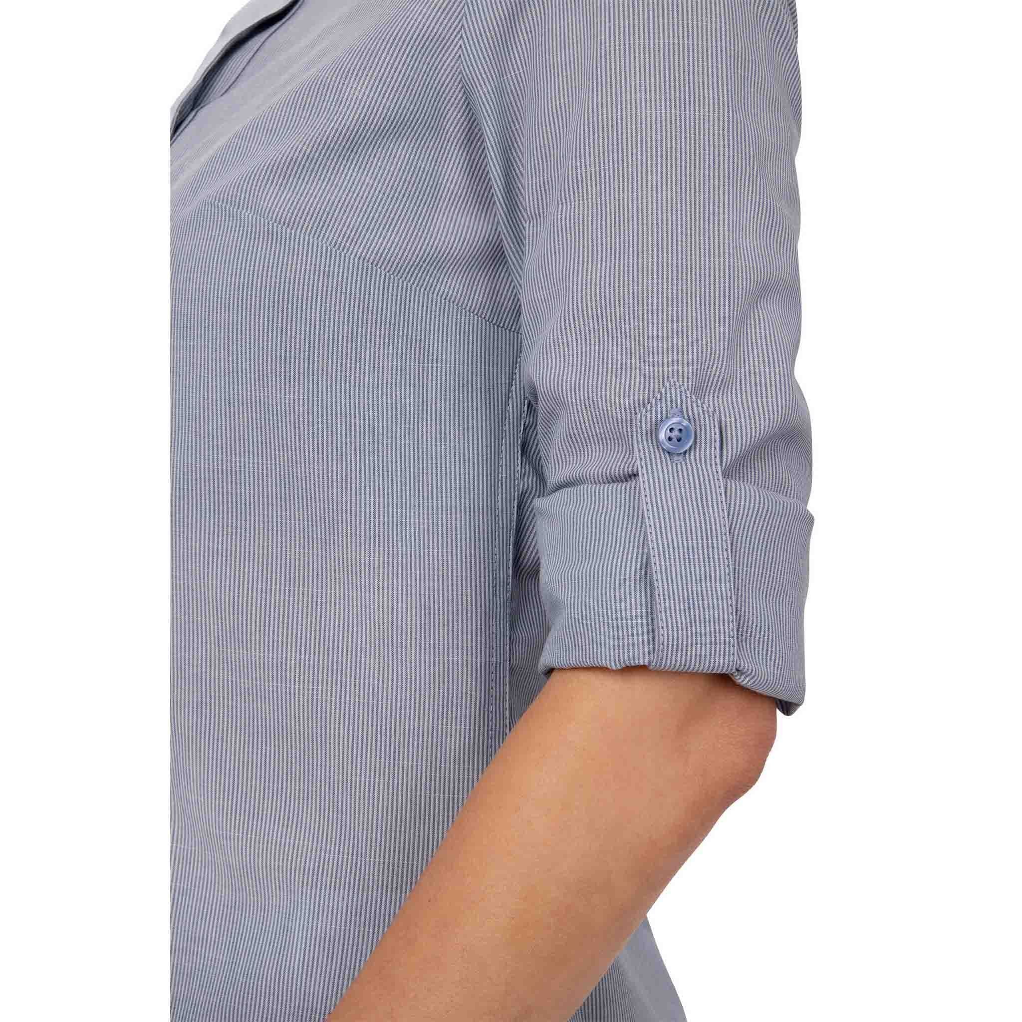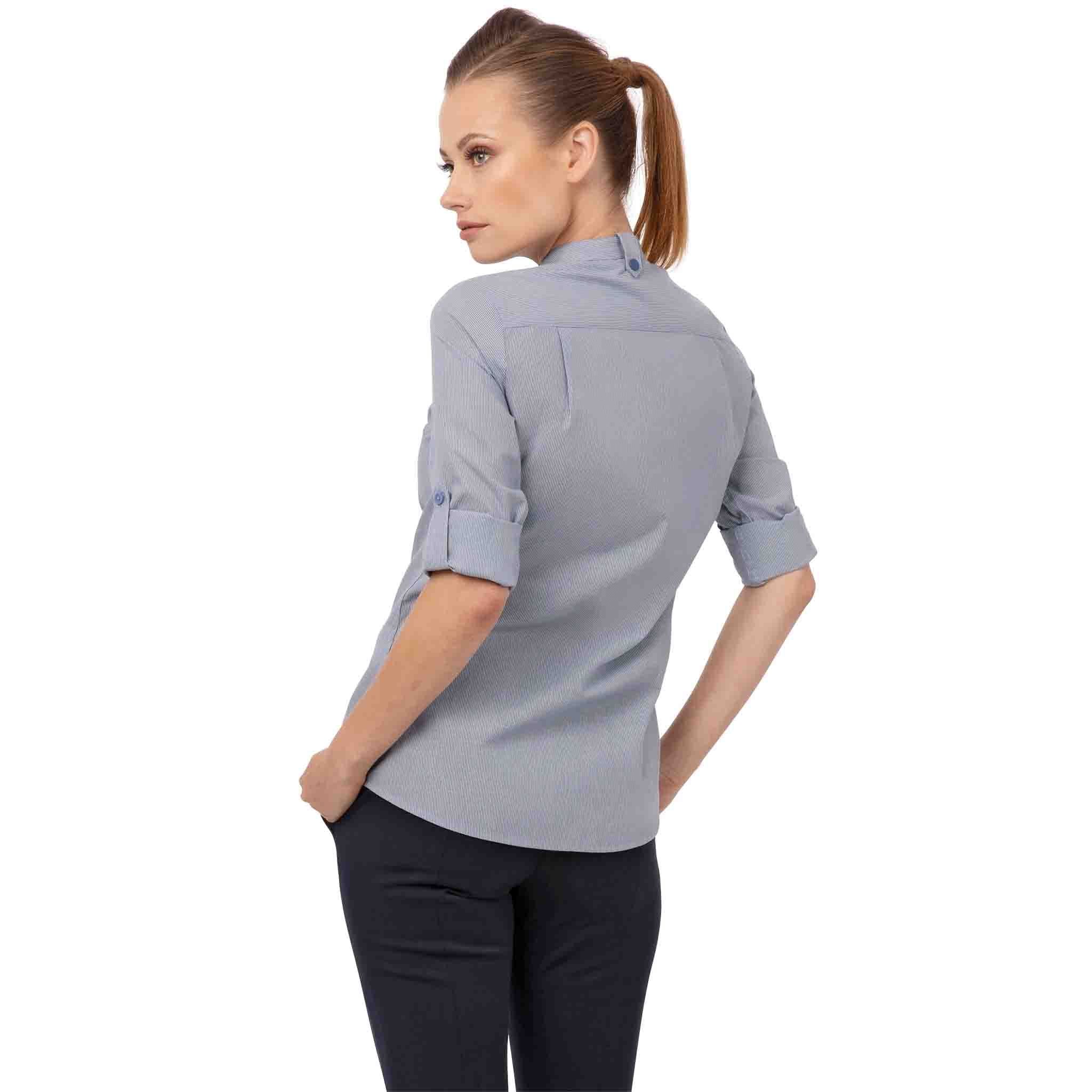 クラシックなバンドカラー(帯襟)シャツを現代風にアレンジ。柔らかく落ち着いたトーンの色合いに繊細なストライプ柄が施された生地は軽くソフトな着心地。首掛けタイプのエプロンを安定させる為のエプロンストラップホルダーを首後ろに装備し、勤務中にエプロンストラップがずれる煩わしさから解放してくれます。袖の内側には袖留め用のスナップボタン付きタブを装備。長袖をロールアップして着用する際に使用する事で、袖のずれ落ちを防止しすっきりとしたスタイリングを維持可能。モダンなレストランから落ち着いたバーまで、洗練された空間を演出するのに最適な一着。