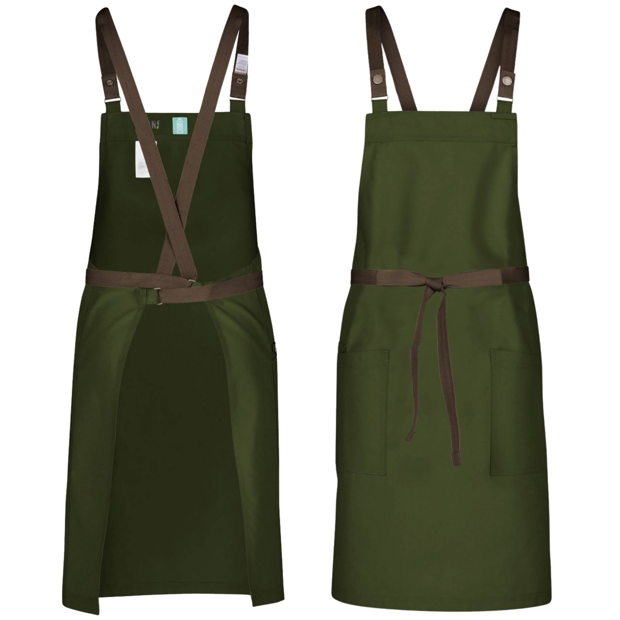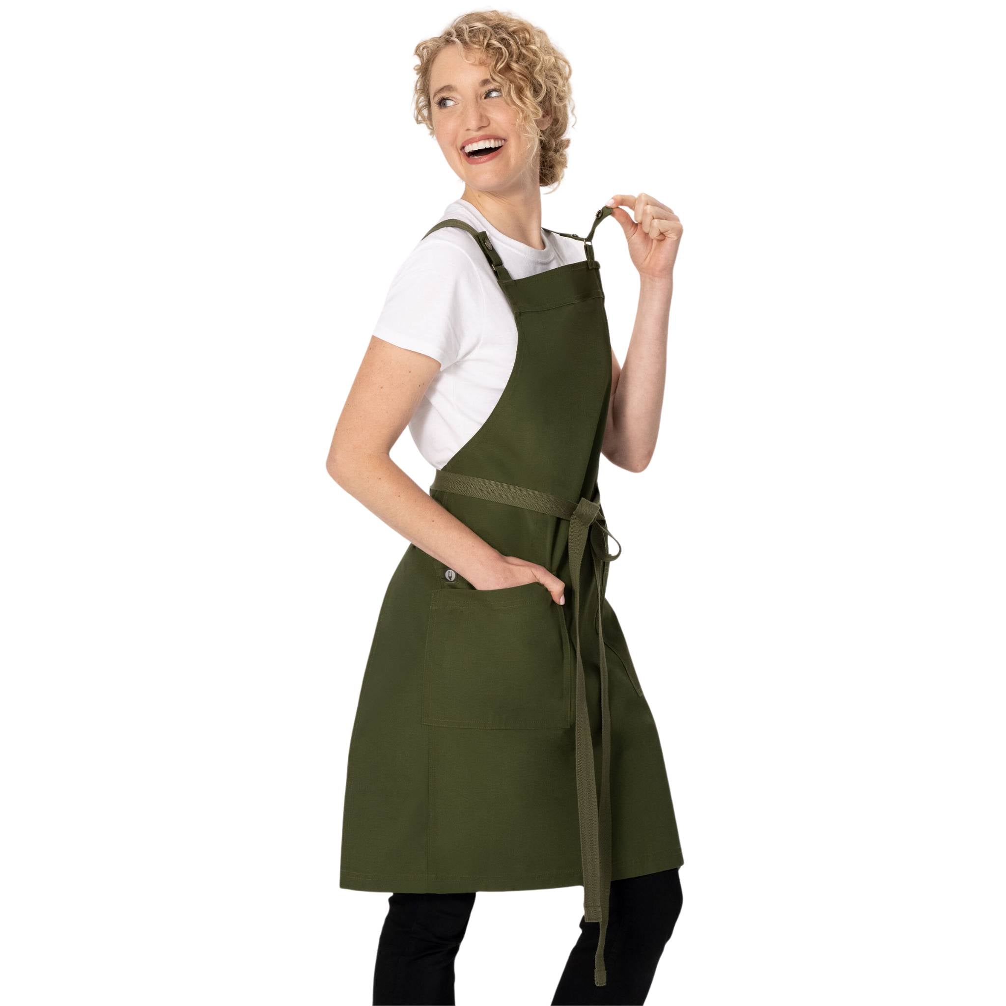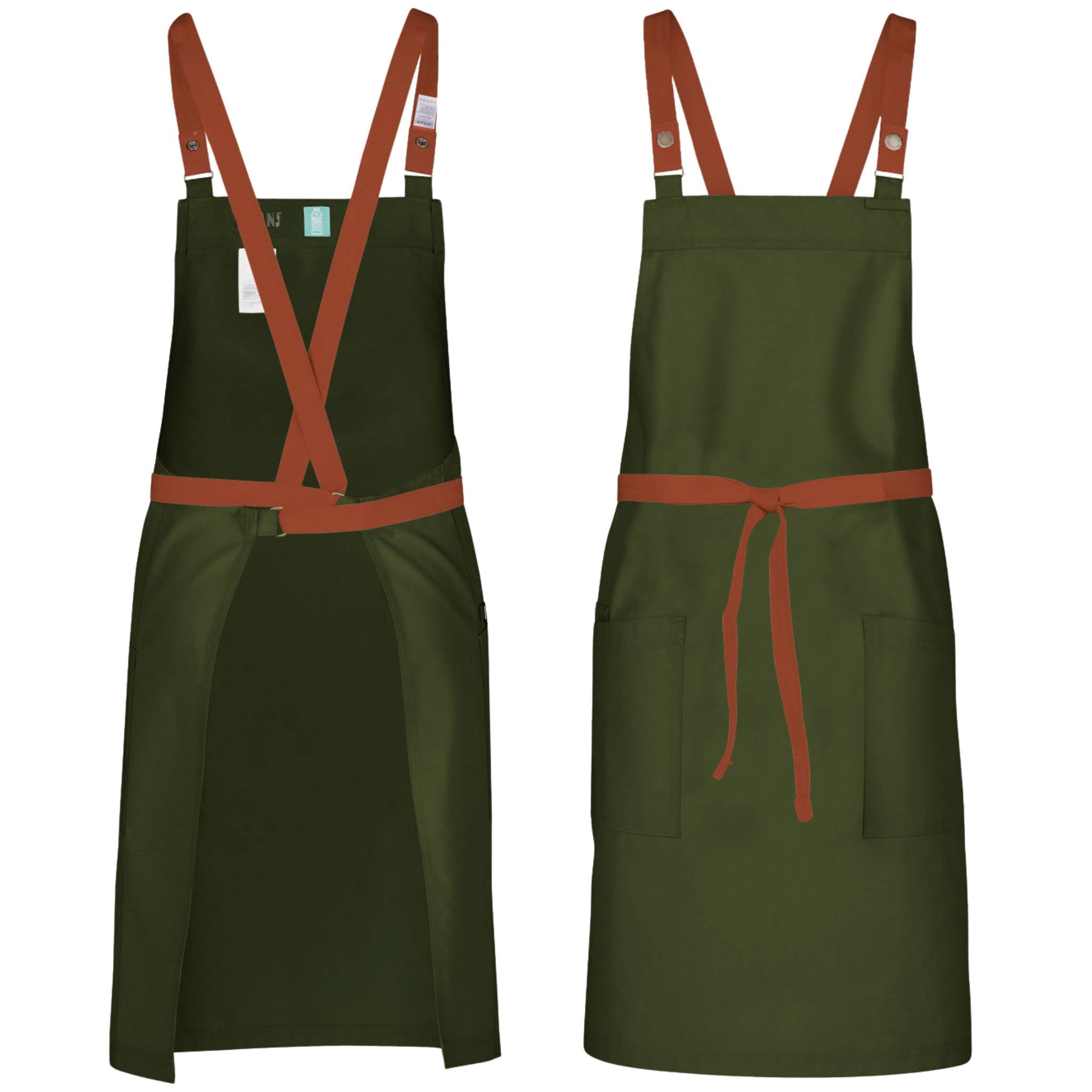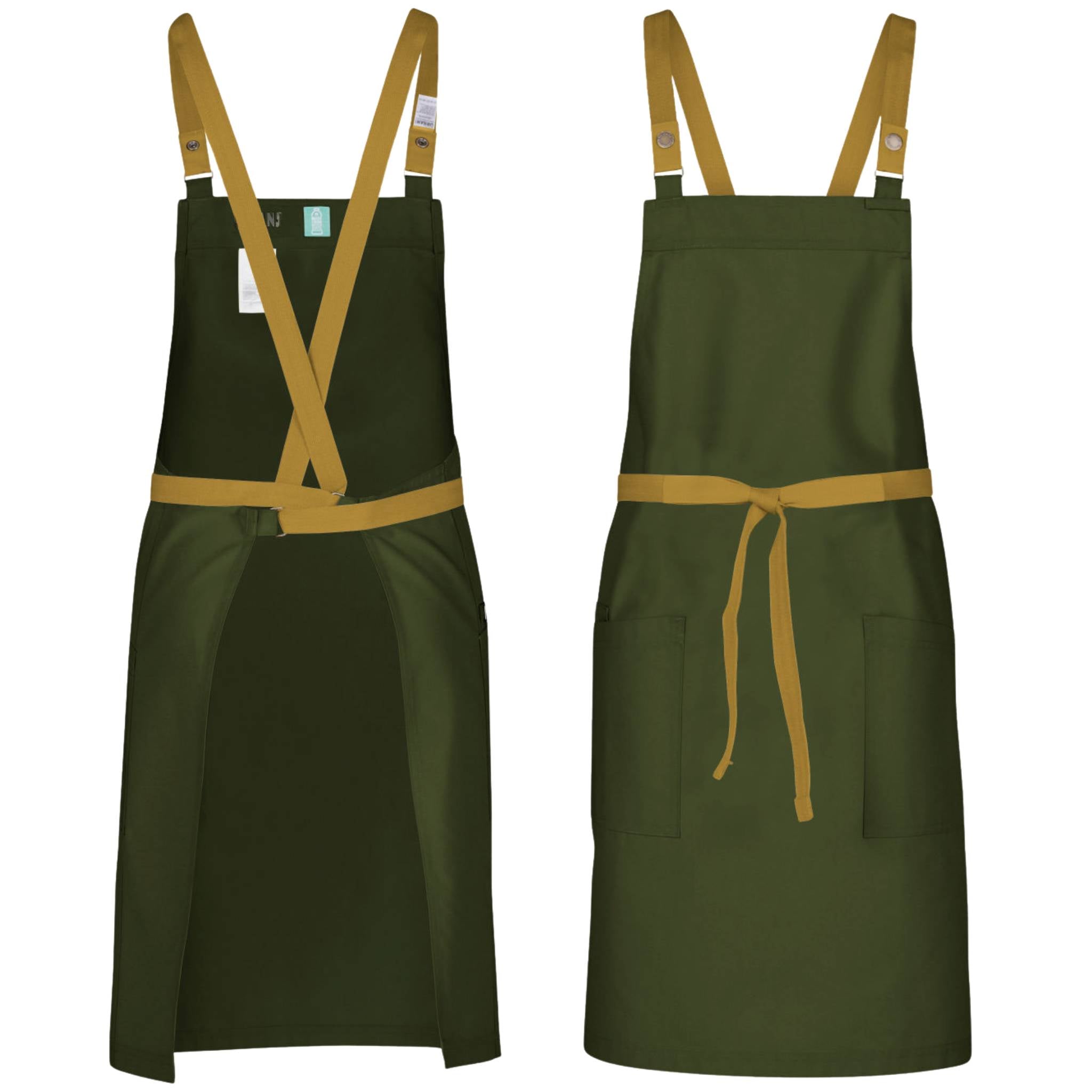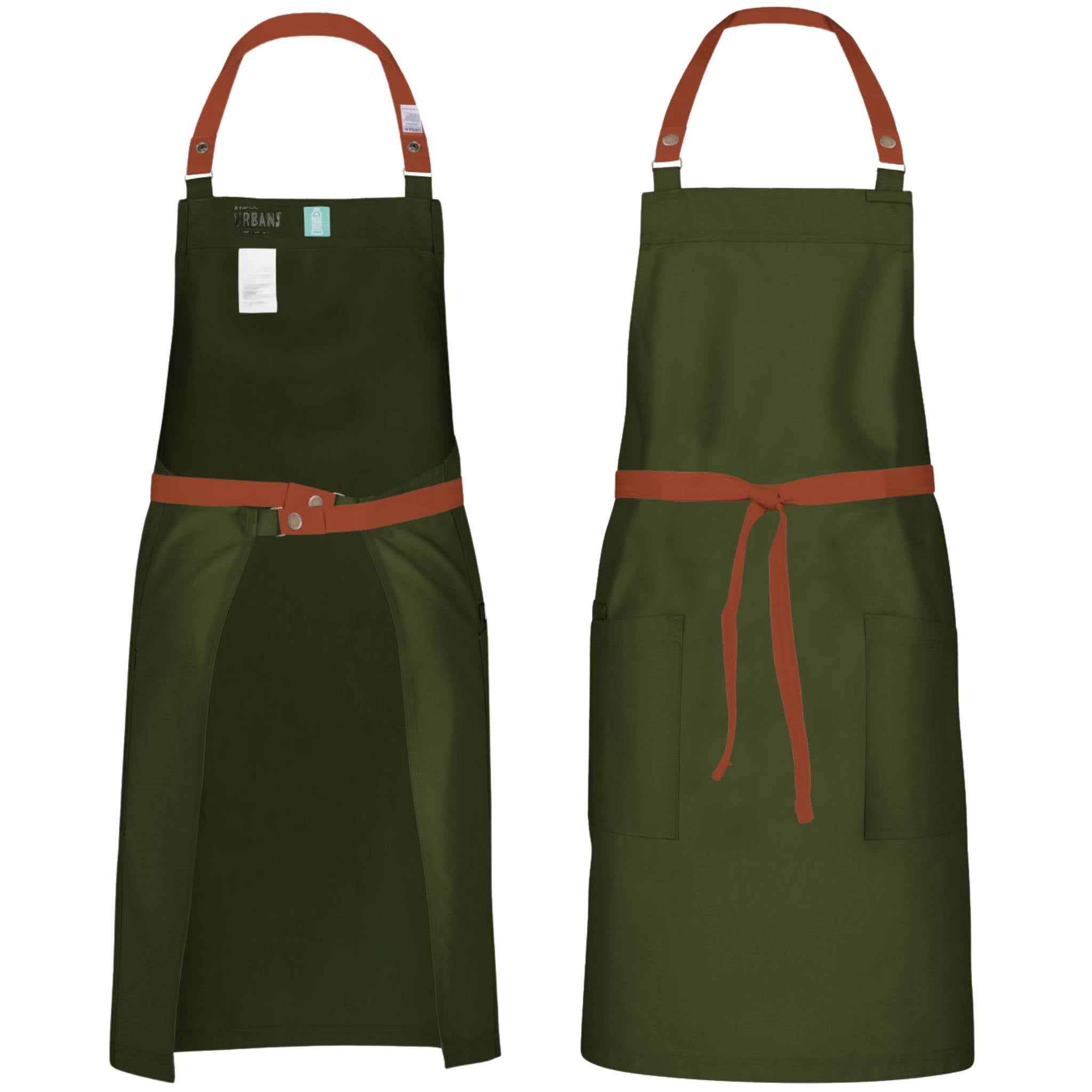 店舗演出やスタッフの好みに合わせてカスタマイズ可能な「ロックハート」エプロン。Chef Worksが開発した特別なサスティナブルキャンバス生地を使用。丈夫さとラフな質感がお洒落なキャンバス生地を、ペットボトルからリサイクルされたポリエステル繊維と綿で構成。キャンバス生地の特性はそのままに、サスティナブルなエプロンに仕上がりました。ポリエステル繊維を配合している事で耐久性、シワのつきづらさ、乾きの早さにも優れ、毎日の着用と洗濯を繰り返す飲食店での使用に最適です。タブレットを収納可能な大きめサイズのポケットが左右ヒップに1つずつ、右ポケットにはペン・小物挿し付きでとっても便利。左胸ストラップの付け根にはユーティリティループ(同生地のベルトループ)を備え、ペン挿しとしての使用はもちろん、カラビナを使ってお洒落に小物を携帯する事も可能です。豊富なカラーバリエーションに加え、好みのストラップスタイル・カラーを選択出来る点も魅力。安定した着用感で首の疲労を軽減する「クロスバックストラップ」と、すっきりとスタイリッシュな印象に仕上がる「ネック&ウエストストラップ」をご用意しています。レストランやカフェ、居酒屋などの飲食店はもちろん、お花屋さんや床屋さんにいたるまで、丈夫でお洒落なこのエプロンが様々なシチュエーションで活躍するはず。さぁ、みなさんのお店にぴったりなカラーコンビネーションにカスタマイズしましょう。