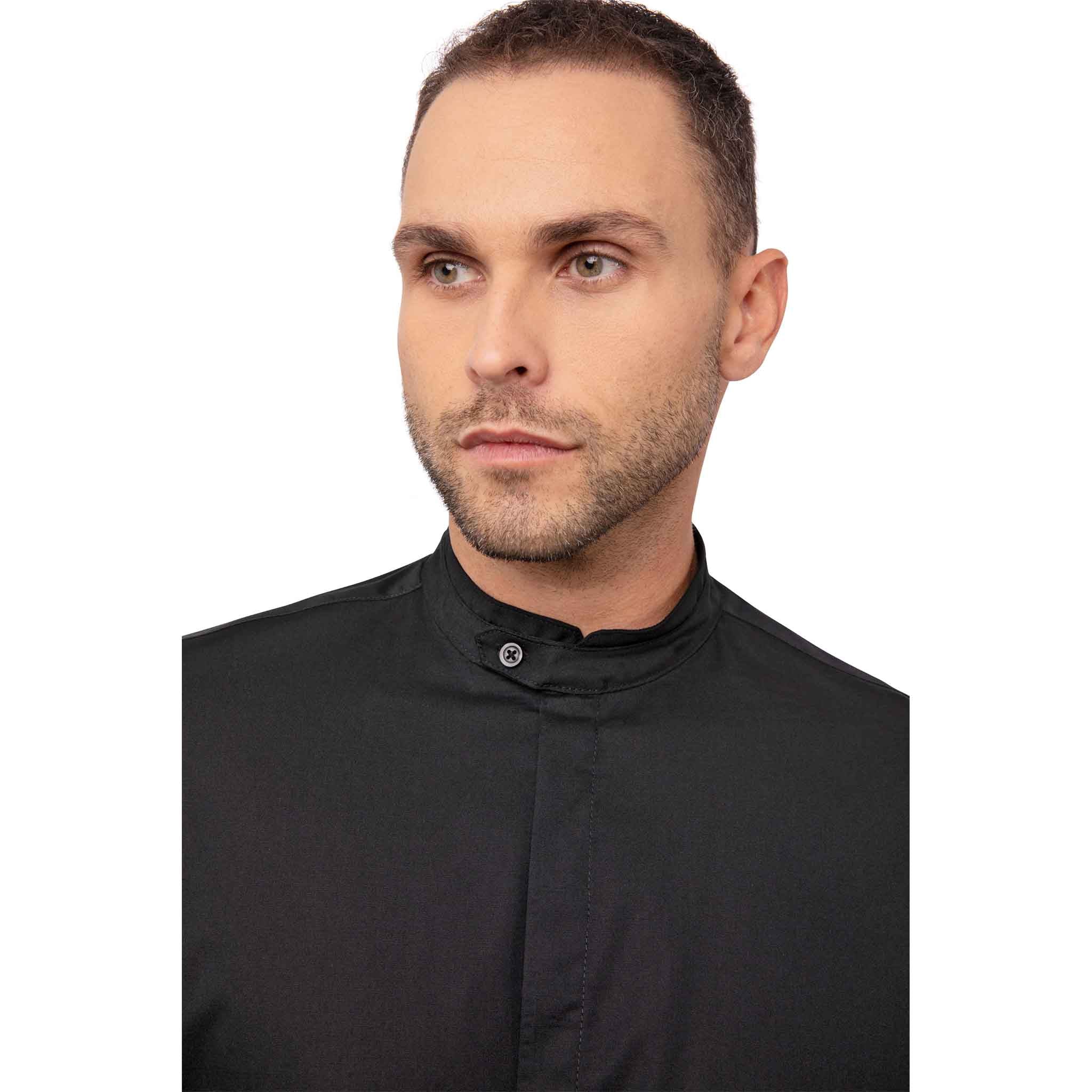 この「フォーメル」シャツを取り入れるだけで、あらゆるコーディネートを洗練されたモダンなスタイルへと進化させてくれます。比翼仕立てで正面のボタンを隠しよりシャープな印象に、バンドカラー(スタンドカラー)で仕立てられた襟にはボタン留めのタブが備わりさりげないアクセントを加えます。程良い伸縮性を持った生地を使用しているので作業も快適にこなせます。シェフワークスがおもてなしの為に開発した長袖ジャケット「エーペックス(CQZ01, CQZ01W)」とも相性が良いので、よりフォーマルなコーディネートをお探しの場合にはエーペックスジャケットとの組み合わせもおすすめです。
