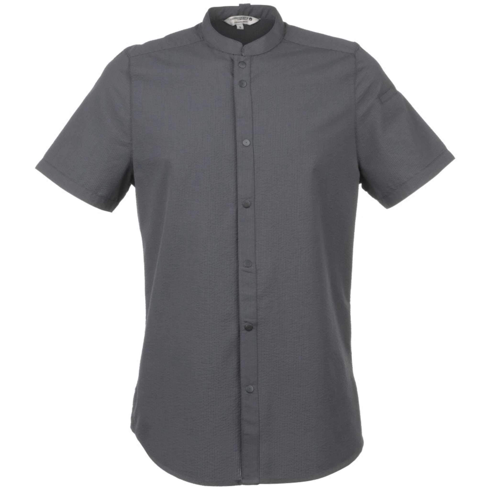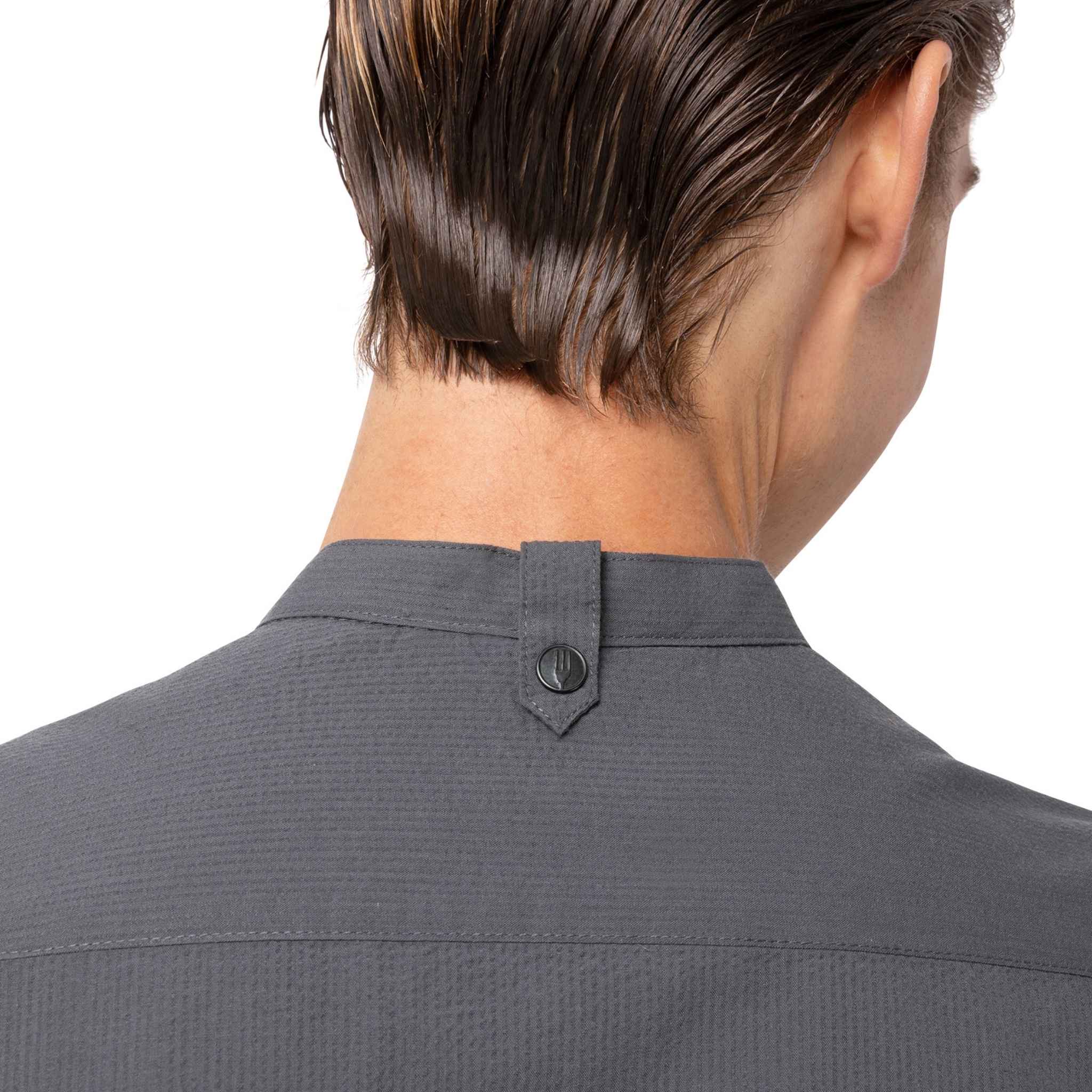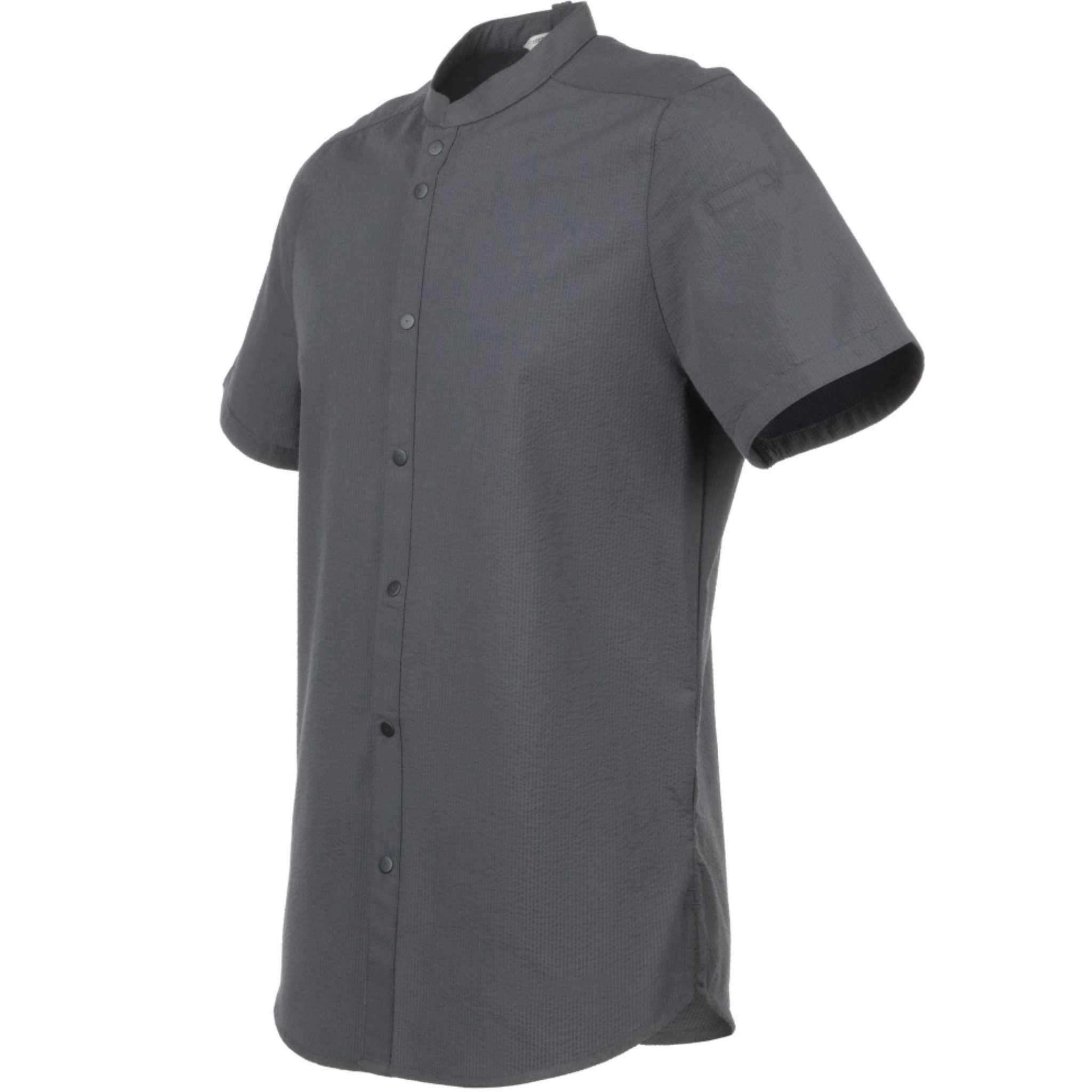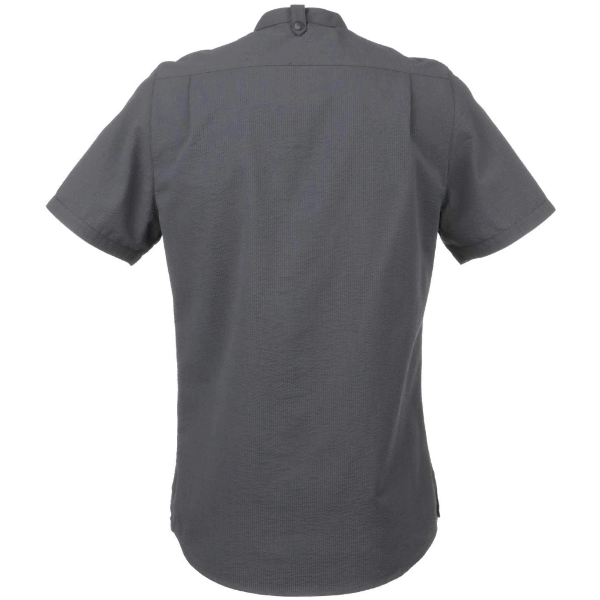 さらりと軽い着心地が特徴の「シアサッカー」シャツ。バンドカラーの襟とスナップボタンで構成された前開きが、モダンで洗練された印象を与えます。レストランやホテル、バーやケータリング等、お洒落さに加えさりげない上品さが求められる場面でも活躍します。その名の通り生地には「シアサッカー」を採用しており、「しぼ」と呼ばれるポコポコとした独特な生地の風合いが、生地と肌の触れ合う面を少なくし、通気性に優れたさらりとした着心地を実現しています。日本の浴衣や作務衣にも用いられる、暑い時期にも最適な生地になります。左袖に埋め込まれた隠しペンポケットやエプロンストラップを安定させる為のエプロンホルダー等、ハードワークを支えるChef Worksならではの機能もしっかりと備えています。