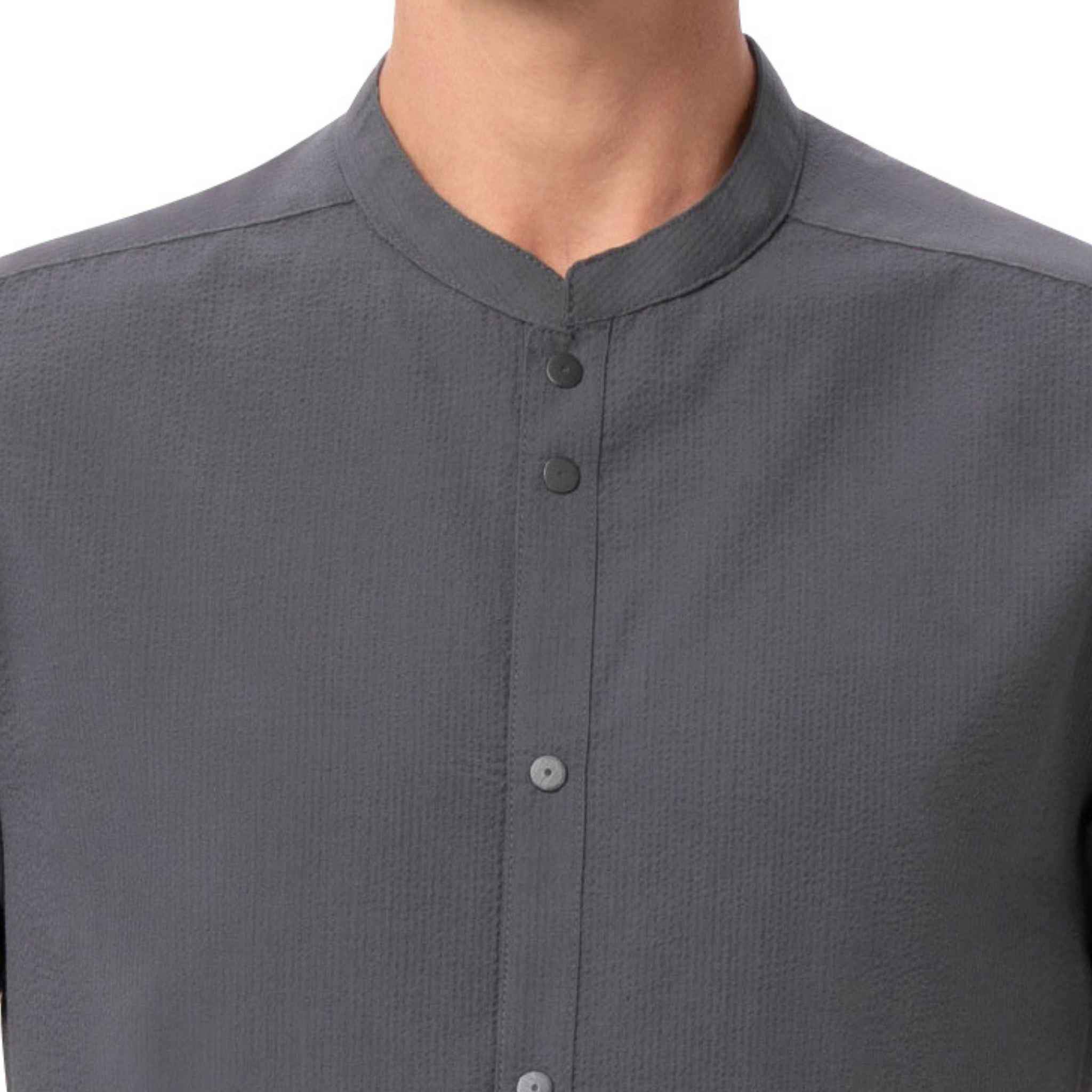 メンズ シアサッカー チャコール 半袖シャツ