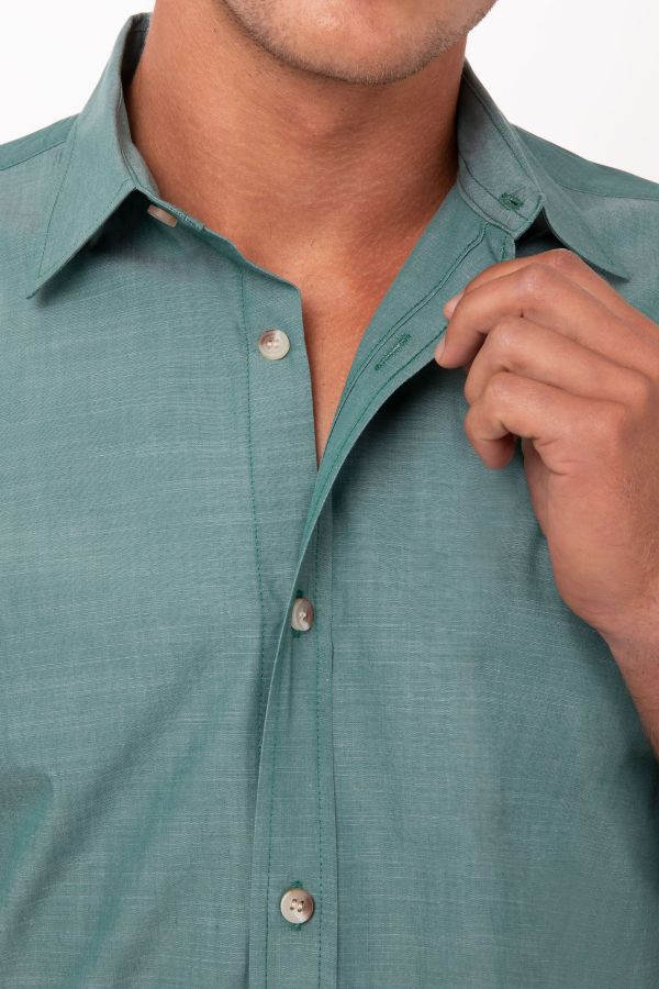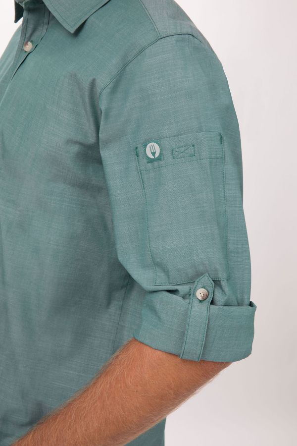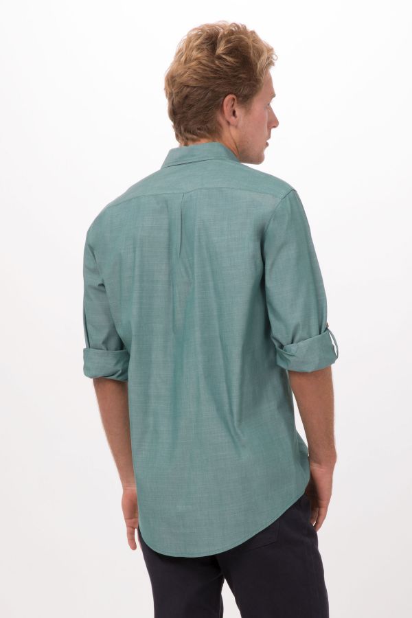 メンズ シャンブレー グリーンミスト 長袖 シャツ