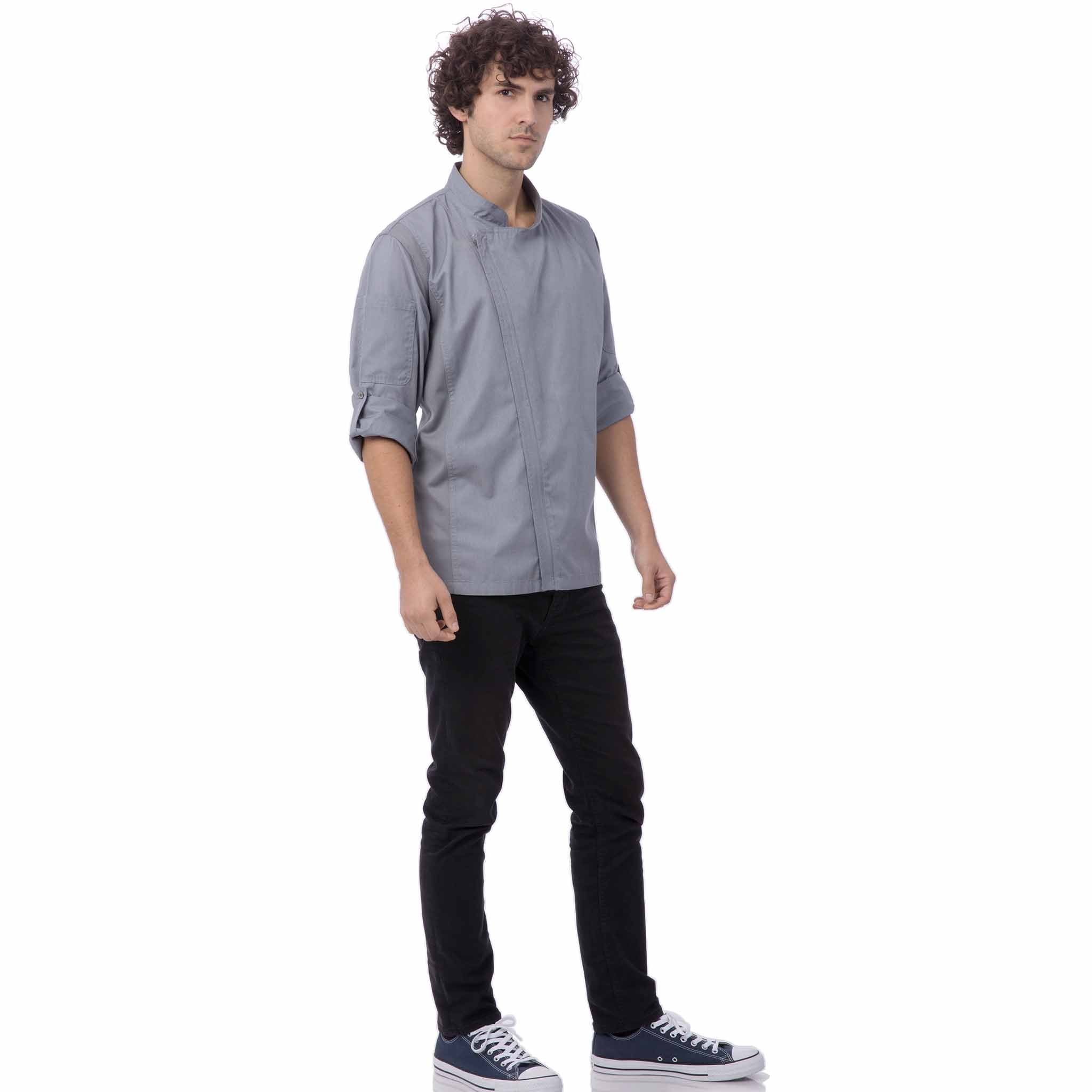 Chef Worksのコックコートコレクションの中において、シェフからの支持を最も得ているコックコートの一つ、「ハートフォード」。隠しジッパー式の前開きを採用したすっきりとしたスタイルと、豊富なカラー展開でどんな飲食店にもフィット。ジッパー式なので脱ぎ着が簡単で毎日の着替えもストレスフリー。ジッパーの金具は比翼生地で隠されているので、火で金具が熱くなる心配もありません。身頃前面と背面の両サイドには、通気性と伸縮性に優れる「Cool Vent」生地を採用。コックコート内の蒸れを防ぎながら肩回りの動きやすさにも貢献し、暑く忙しいキッチンでの作業を快適にサポートします。首後ろの襟部分に搭載されたスナップボタン式のエプロンホルダーを使用すれば、エプロンが安定するので作業がし易く、またユニフォームの着崩れも防ぎます。袖内部には袖留め用のスナップボタン付きタブを備えており、ロールアップした袖もスタイリッシュに留めておくことが可能。本体生地には軽くて丈夫な「Lite」生地を採用し、乾きもはやくメンテナンスも簡単です。豊富なカラー展開とサイズ展開をご用意しています。みなさんにぴったりな「ハートフォード」で、お洒落で快適なシェフライフを楽しみましょう!
