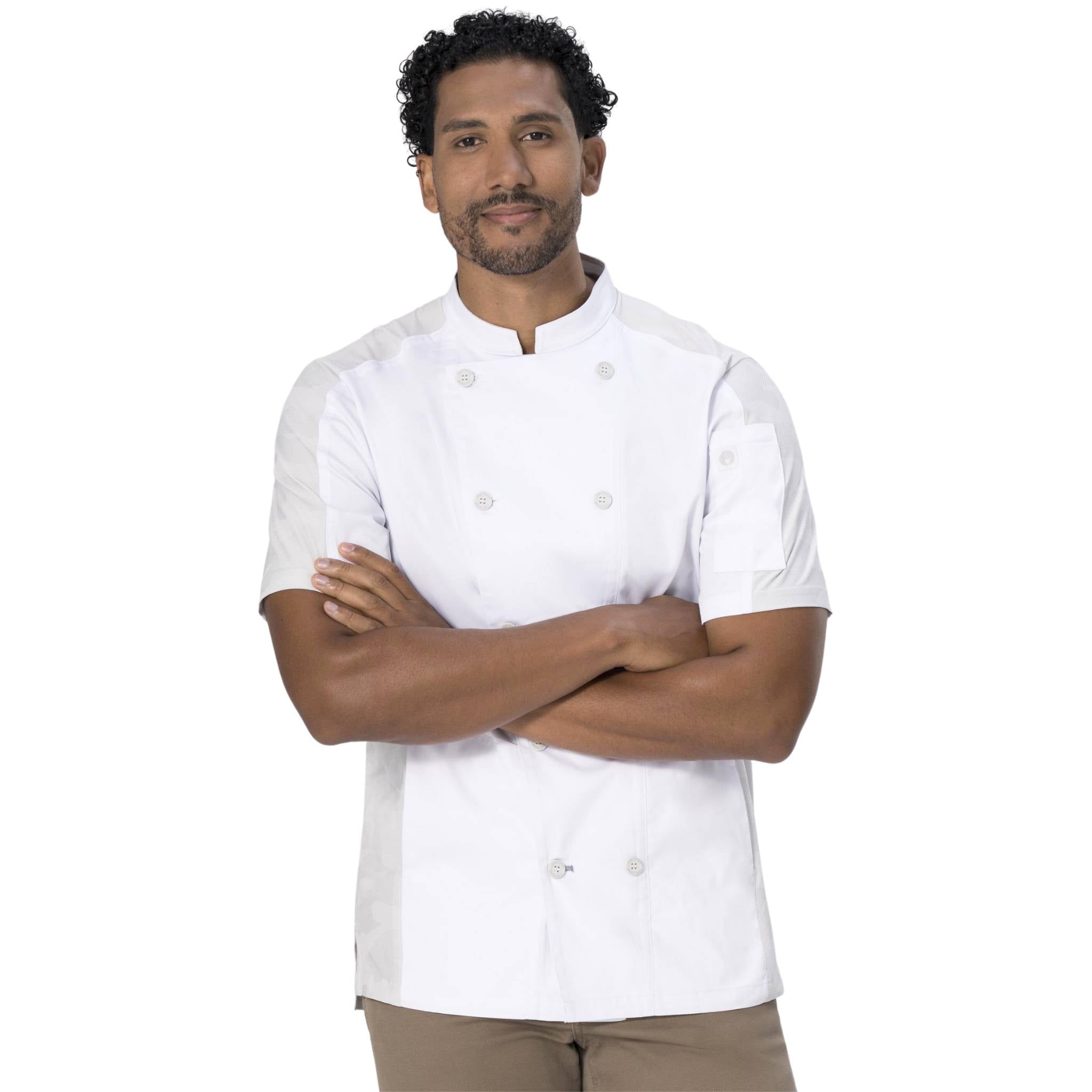 メンズ モハーベ ホワイト カモフラージュ柄メッシュ搭載 半袖 コックコート