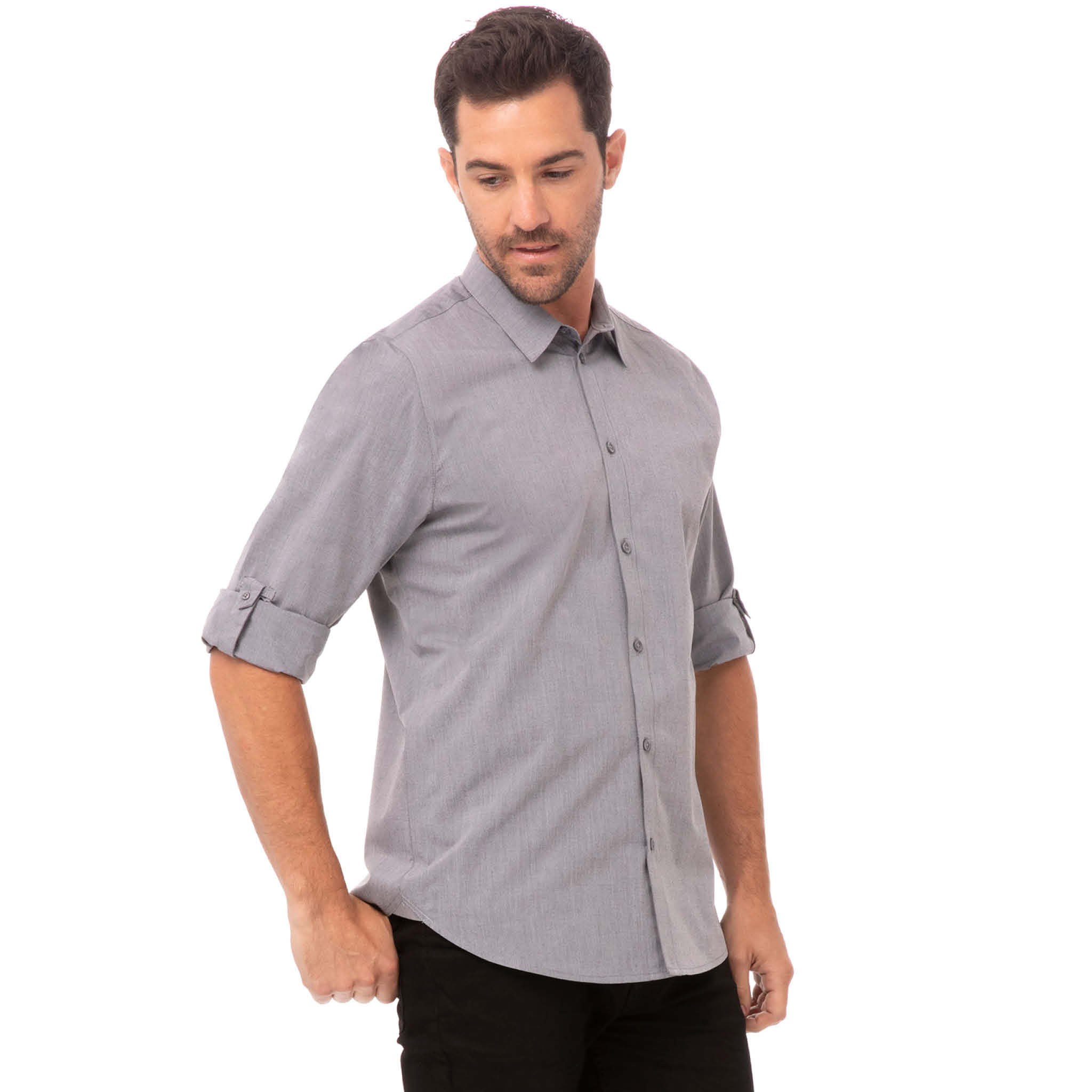 メンズ モダンシャンブレー グレー 長袖 シャツ