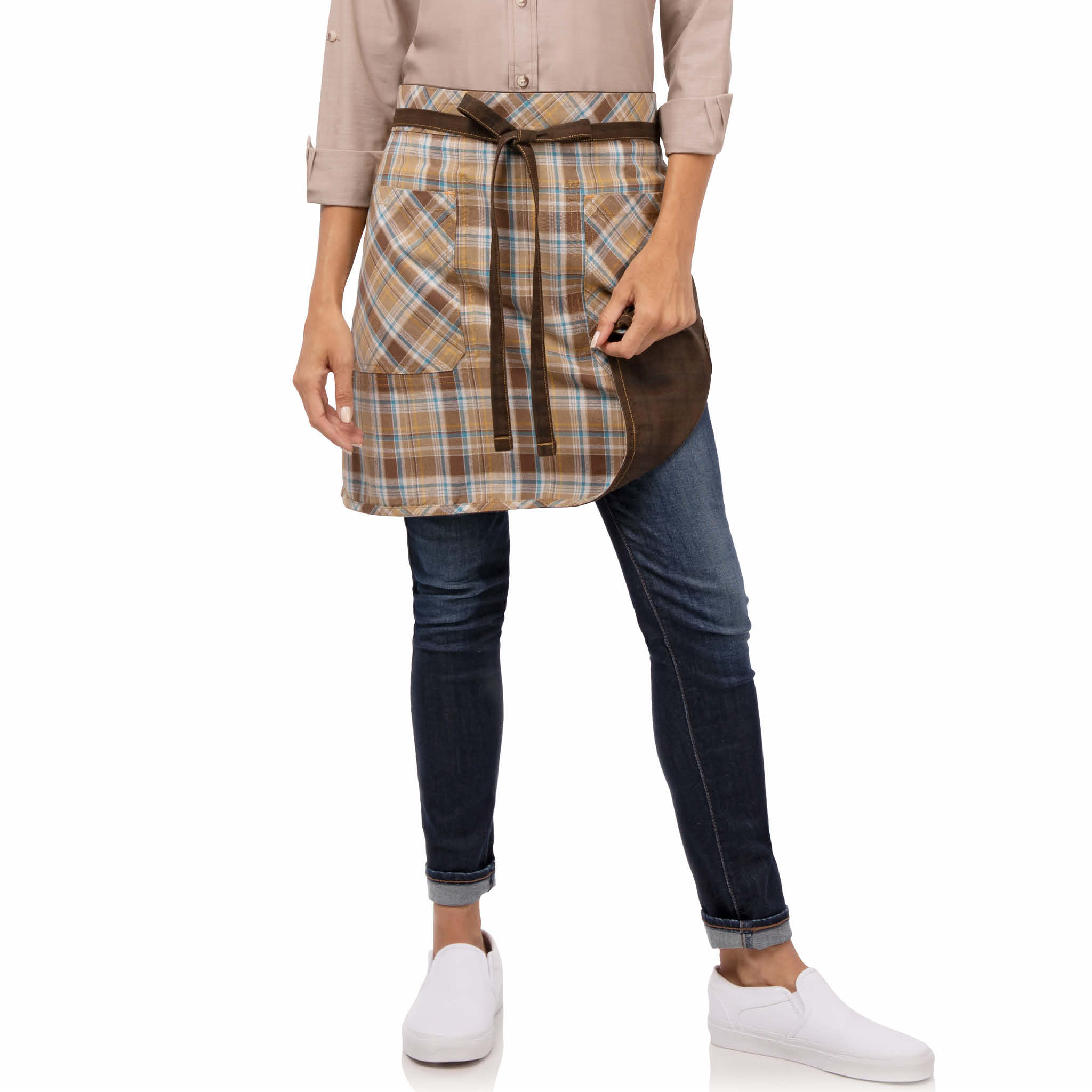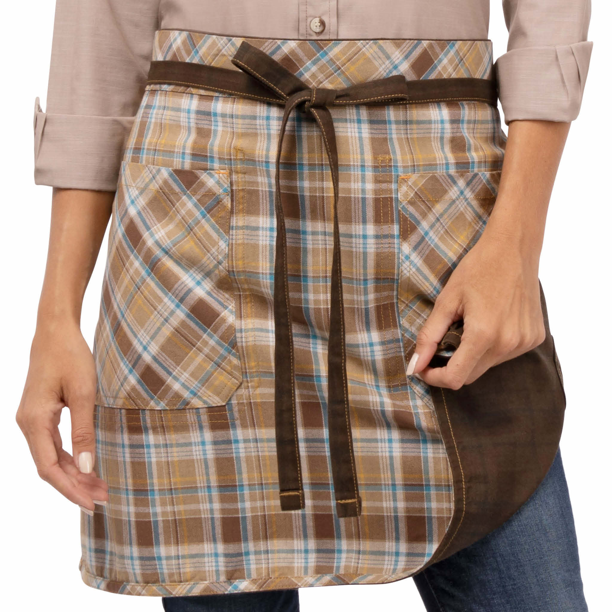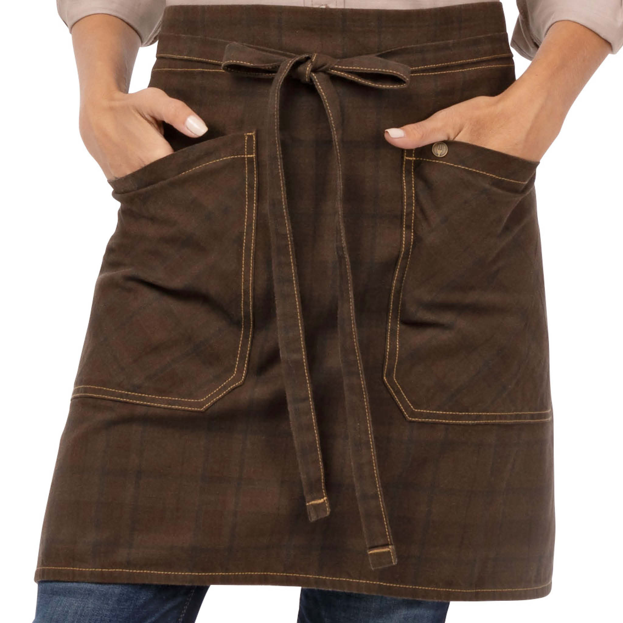 オリンピア ブラウン タータンチェック リバーシブル ミドル サロン エプロン