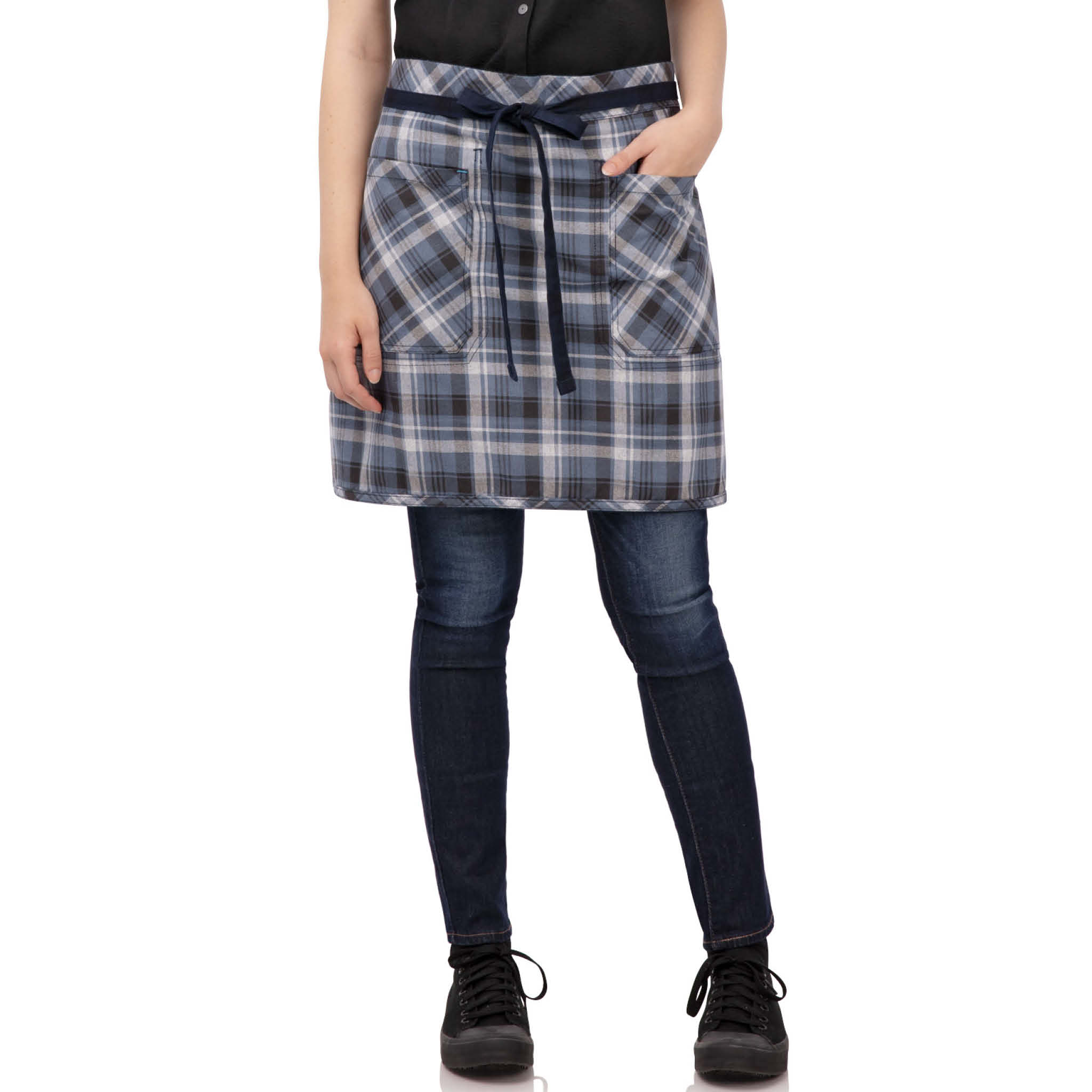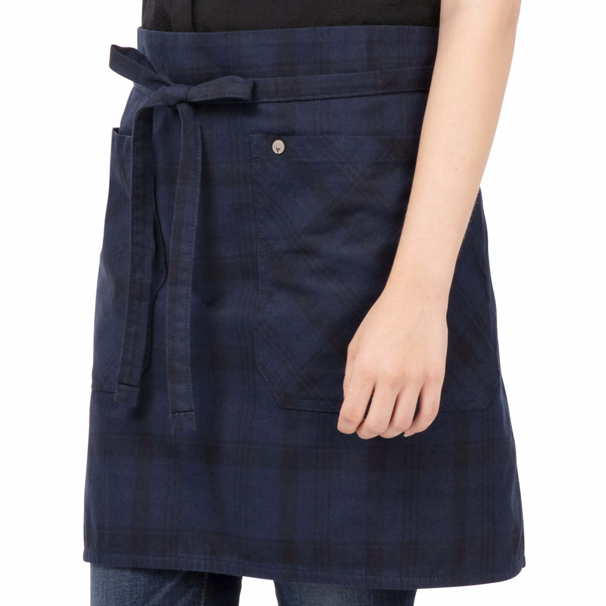 オリンピア ネイビー タータンチェック リバーシブル ミドル サロン エプロン