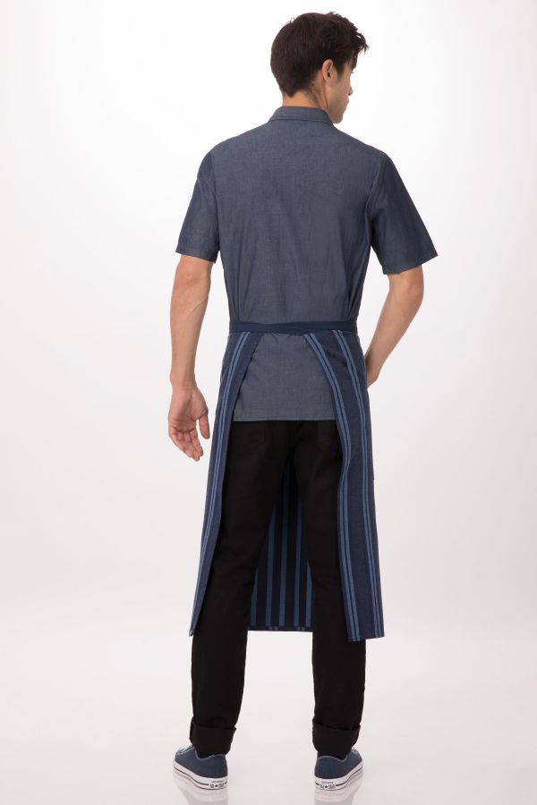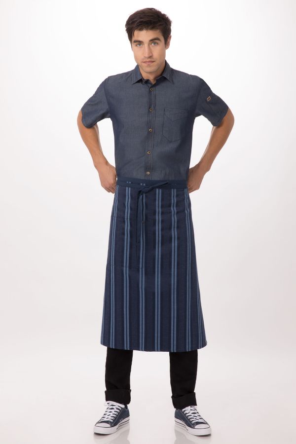 プレシディオ ネイビー/ブルー ストライプ ロング サロン(ソムリエ) エプロン