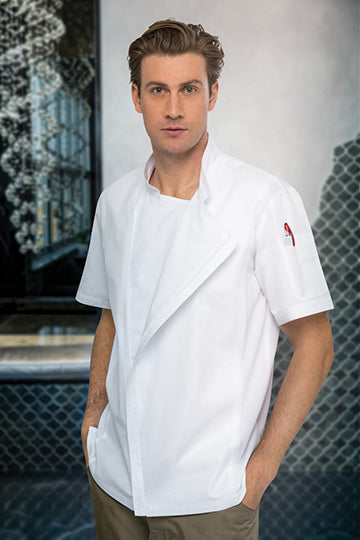 Chef Worksアーバンコレクションの人気アイテム、スプリングフィールドをさらに進化させ、綿100%で作ったロチェスターコックコート。半袖のジッパージャケット、ボディー両サイドは伸縮/通気性に優れるメッシュ生地「Cool Vent™」を採用しており、かつてない快適性を実現しています。右腕に普通サイズのポケット、左腕にペン・温度計用ポケット付き。カラーの後ろにはスナップボタンでエプロンを留めるエプロンホルダー付き。裏地についている隠れジッパーなので、火で金具が熱くなることも避けられます。ボタンやポケットが前にないので、見た目もすっきり、お店のロゴや名前の刺繍が映えるコックコートです。 #Rochester #ろちぇすたー #白 #しろ #ほわいと