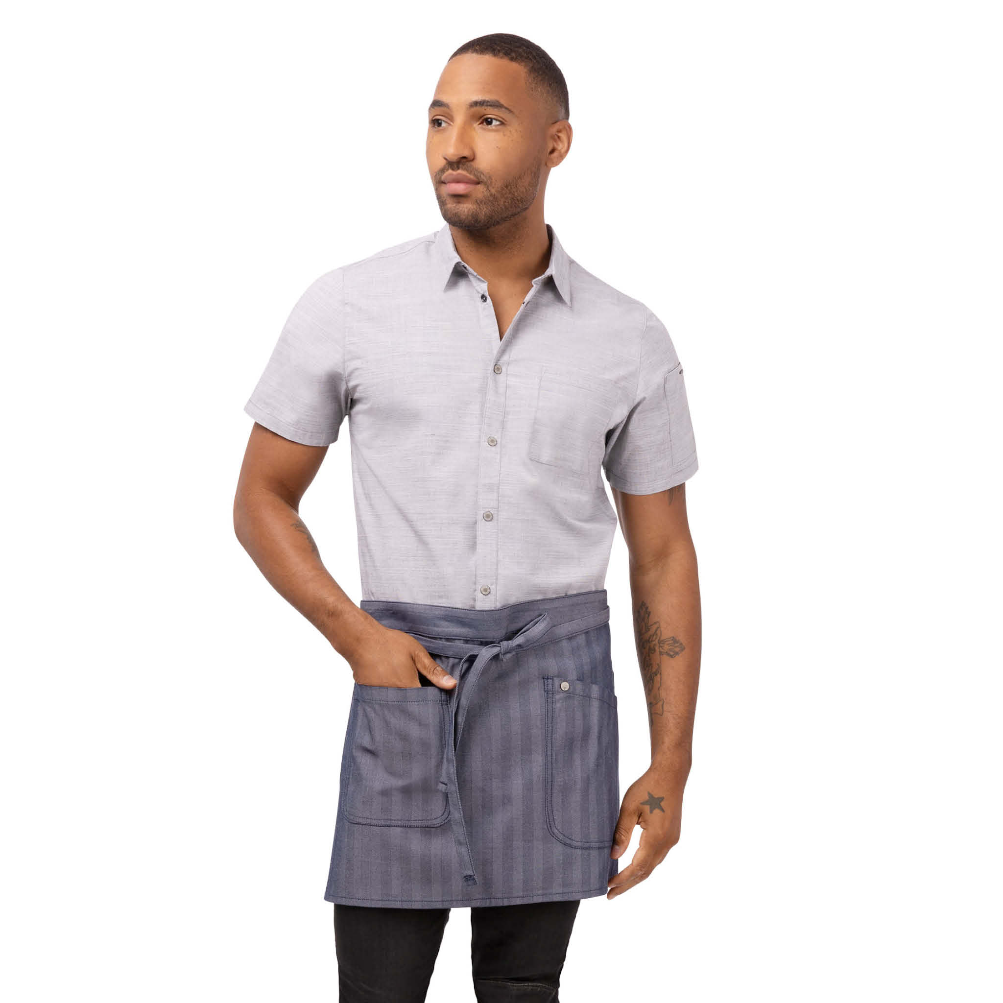 高級感漂うヘリンボーン生地を使用したこのエプロンは、その名の通りアメリカ西海岸北部の街「シアトル」からインスピレーションを受けた、ユニークながらどこか落ち着いた印象をもたらすモダンストリートスタイル。ダブルステッチで補強された大小4つの機能的なポケットを装備し、タブレットやペンなどをすっきりと収納可能。デザイナーのこだわりは後ろ姿にも。裾端がカーブを描くようにカットされているので後ろ姿もすっきりとおしゃれに。忙しく動き回るサーバーから、ラテアートでお客様を魅了するバリスタまで、あなたを汚れから守りながらも快適に、クールに見せてくれるエプロン。