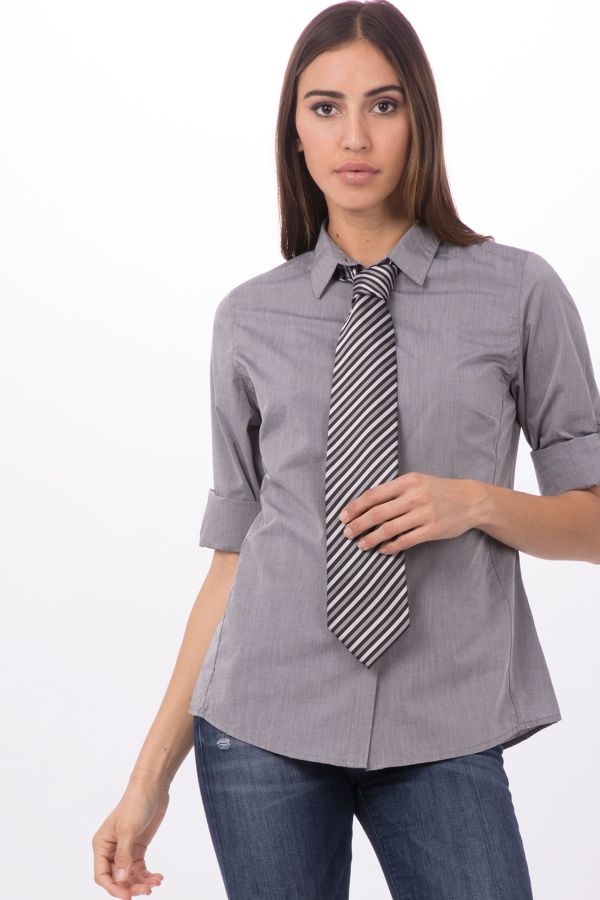 上品なレジメンタルストライプ(英国が起源の斜めストライプ)を採用したネクタイ。コーディネートの仕上げはこのネクタイを。引き締まった装いでお客様をお迎えすれば、お店の印象もグッと変わるはずです。