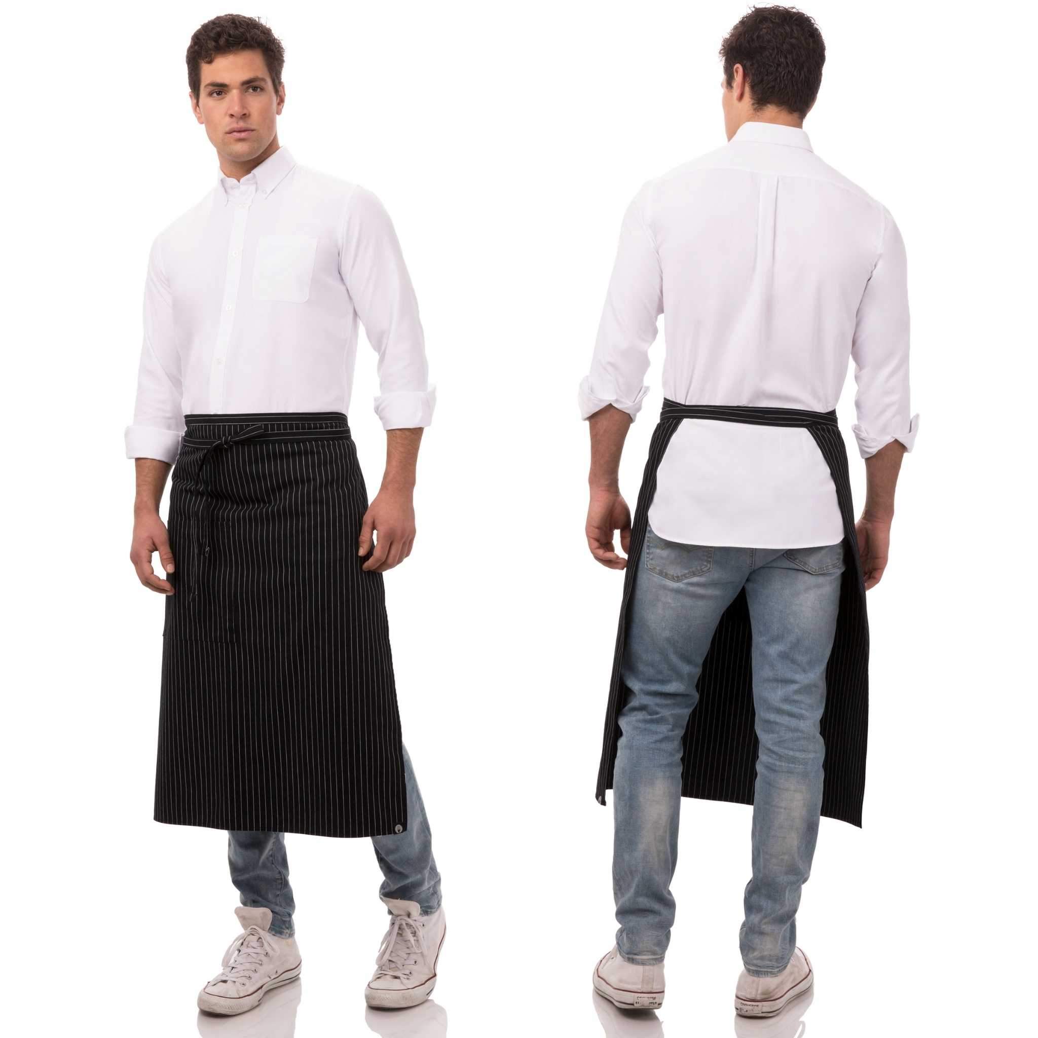 ホワイトピンストライプが上品な雰囲気を演出するロングサロン。お客様に高級感や品質の良さ感じさせる事が出来るのに加え、垂直の線が着る人をよりスマートに見せてくれます。また、ストライプの効果で汚れが目立ちにくい点や、トレンドに左右されないといった点もストライプエプロンの魅力。右腰にはペン挿し付きのポケットも備えており使い勝手もばっちり。ポリエステルと綿の混紡生地で出来ており、丈夫で耐久性にも優れます。シワになりずらく、お手入れも簡単。生地の厚みも6.2 oz.と、リーズナブルなお値段ながらしっかりとした厚みを確保。フォーマルな雰囲気や落ち着いた印象を与えたいホテルやレストラン、バー、カフェなどに最適なピンストライプ柄エプロンを取り入れましょう。