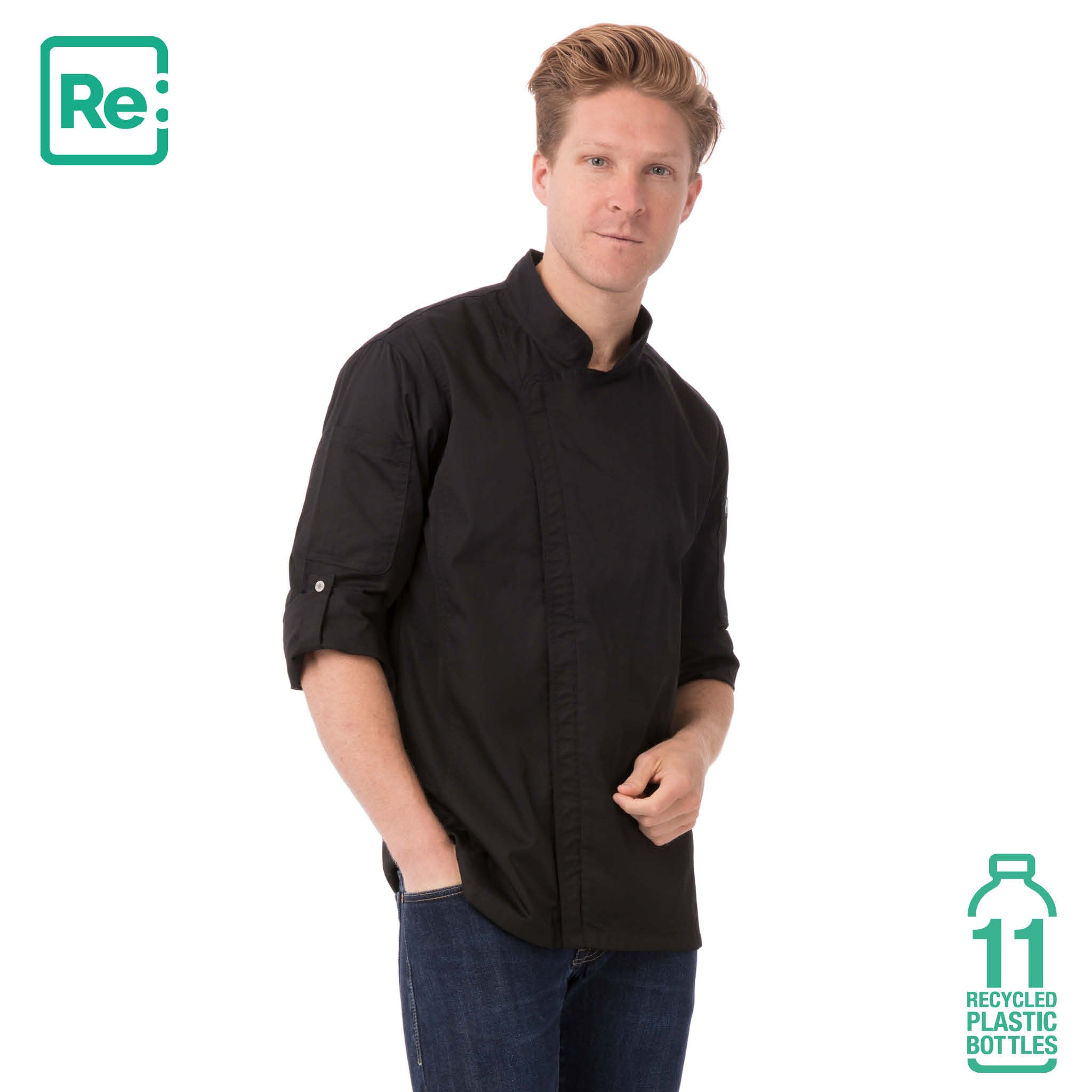 世界中のシェフから絶大な支持を得てきたハートフォードコックコートに、環境に配慮した「Re:」ラインが登場。廃棄されたペットボトルから再製されたポリエステル繊維を使用し、新たに使用する資源の量を削減。環境に配慮したサスティナブルなコックコートとして誕生したこのコックコートが、持続可能な店舗作りを目指すシェフの皆さんをお洒落にサポートします。