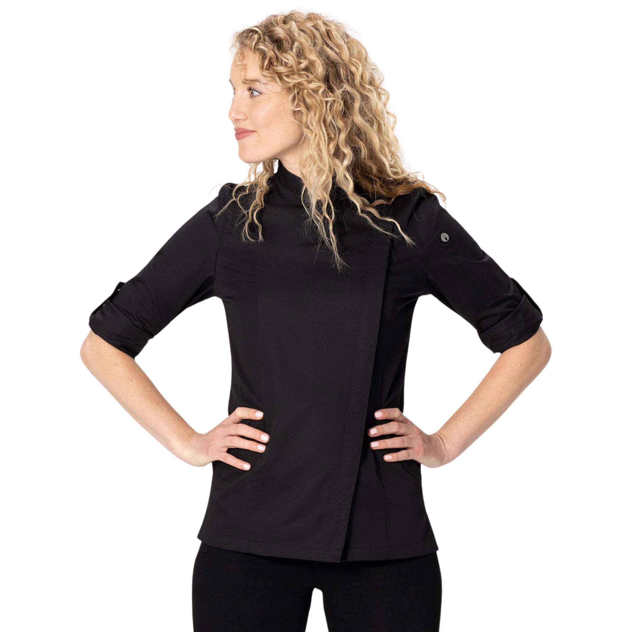 レディース ランシング ブラック 軽量長袖 スナップボタン コックコート